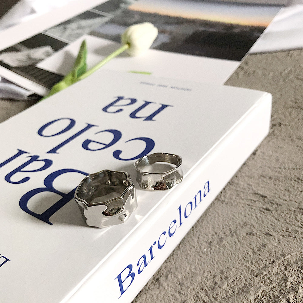 Anillo de moda irregular con textura arrugada