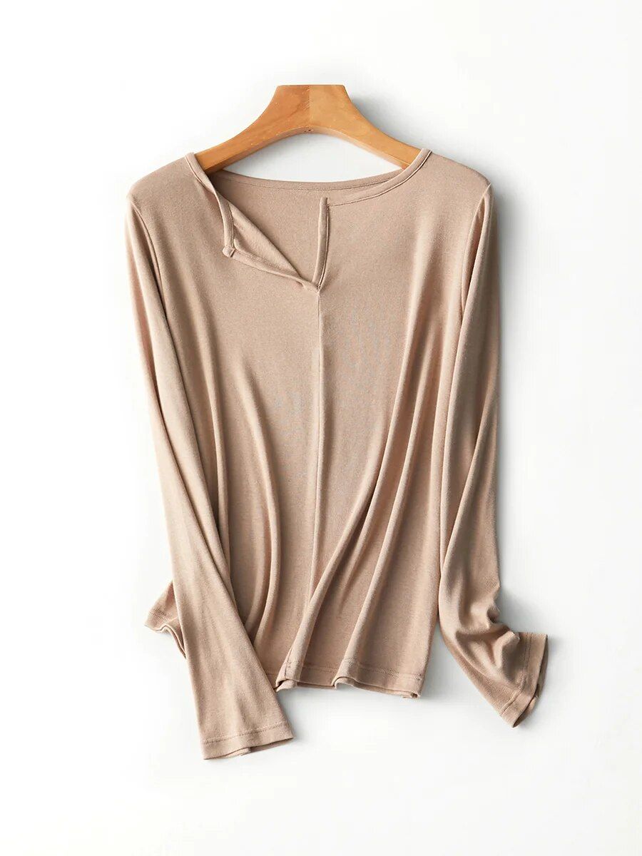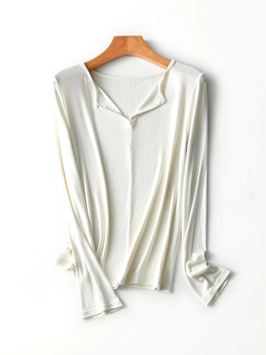Eleva tu estilo cotidiano con nuestra elegante y versátil camiseta de manga larga con cuello cuadrado, el complemento perfecto para el guardarropa de cualquier mujer moderna. Confeccionado con una mezcla única de seda, lana, spandex y viscosa, este top combina comodidad con elegancia, lo que lo hace ideal para usar durante todas las estaciones.