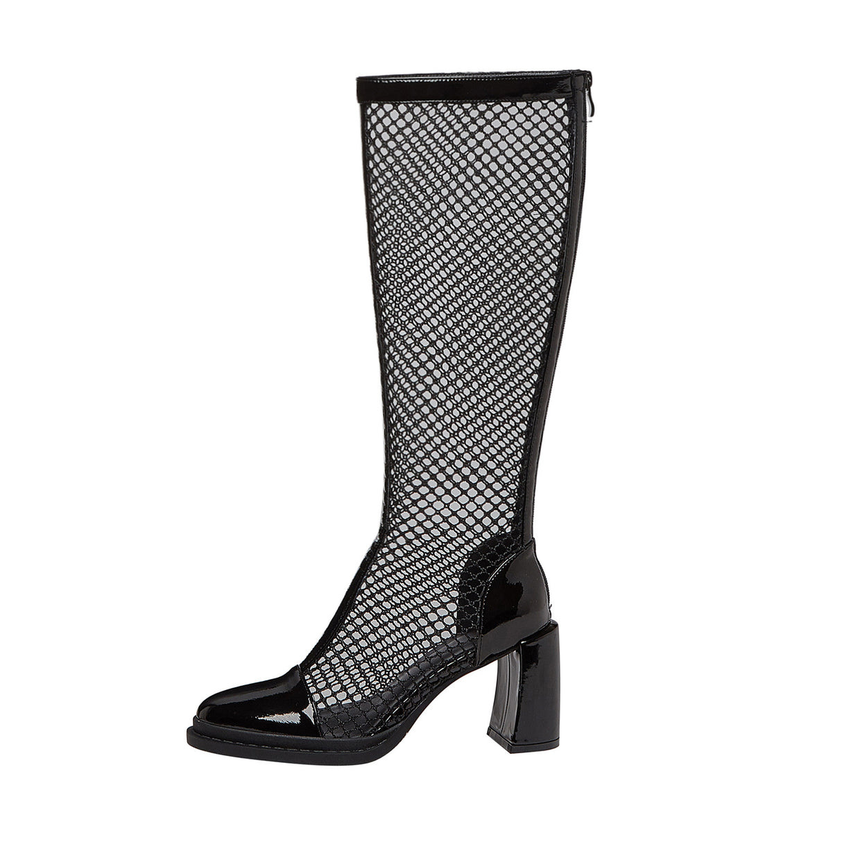 Botas negras de tacón alto con cremallera trasera y punta redonda para mujer