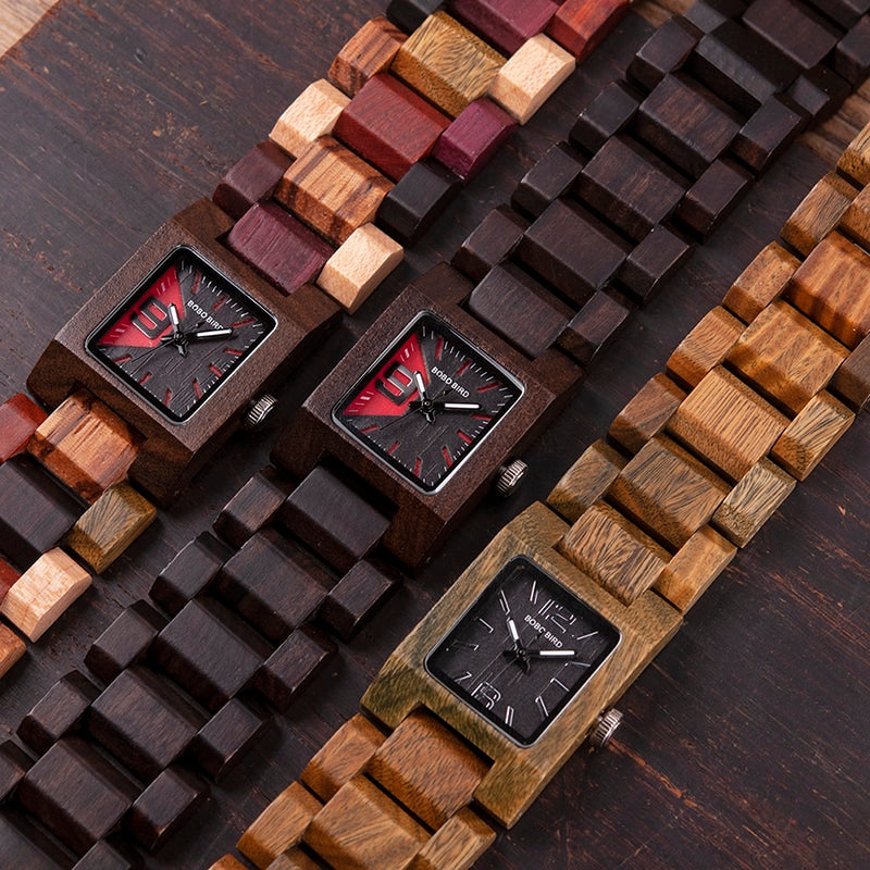 Reloj de madera con forma cuadrada para mujer