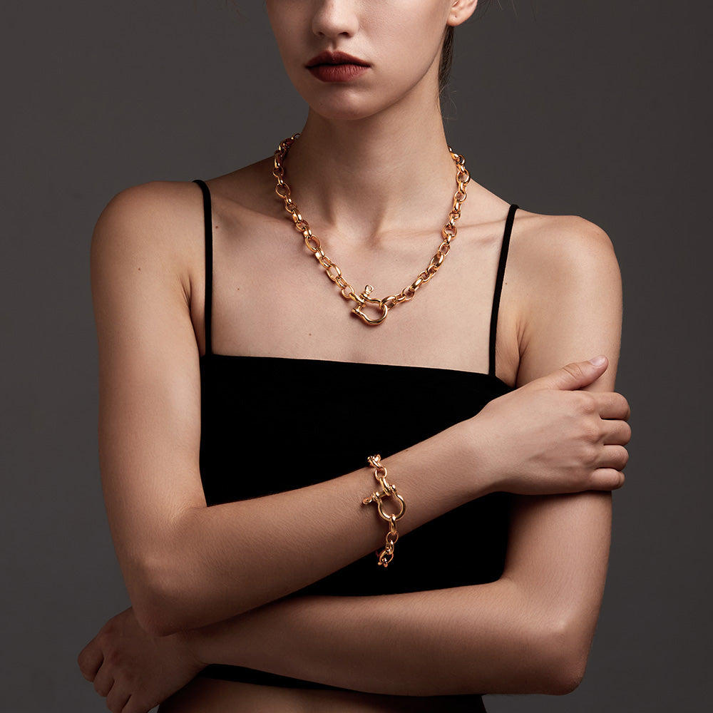 Cadena O de bloqueo en forma de U de diseño europeo y americano de acero titanio de 18 quilates