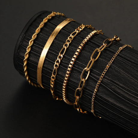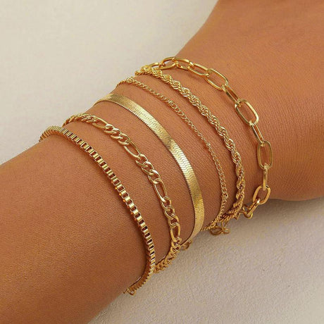 Precio normal €36,95 EURPrecio unitario /AgotadoJuego de 6 pulseras doradas: diseño d...