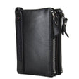 Cartera de cuero de ángel negro para hombre, monedero corto de moda, billetera de piel de vaca con doble cremallera Crazy Horse