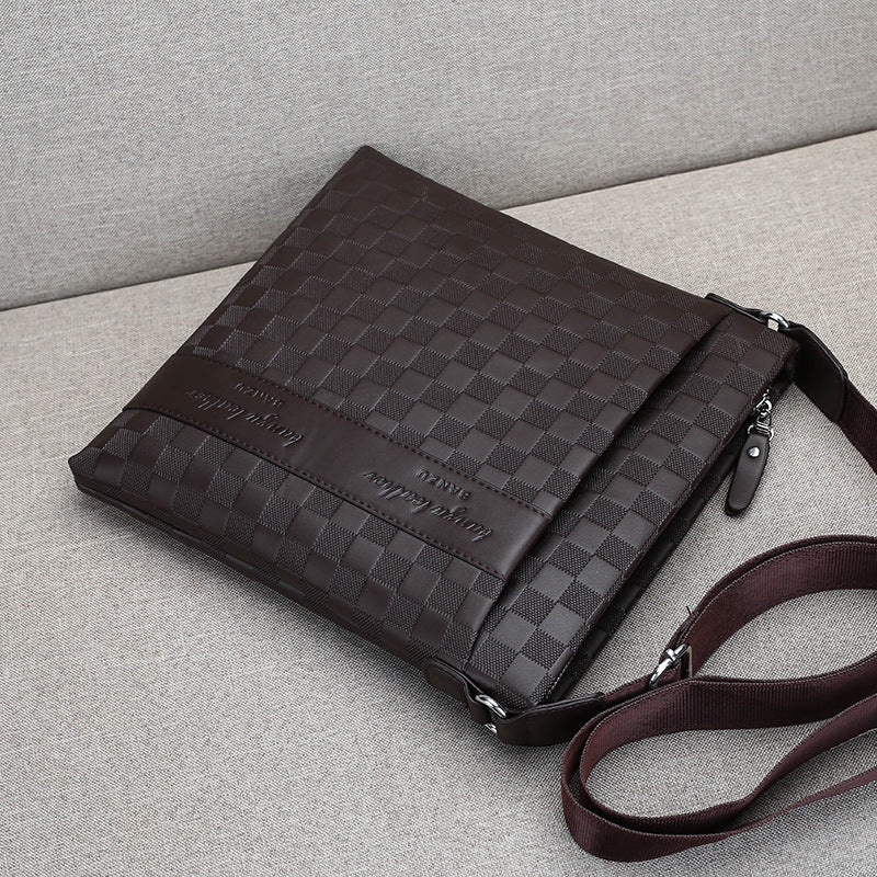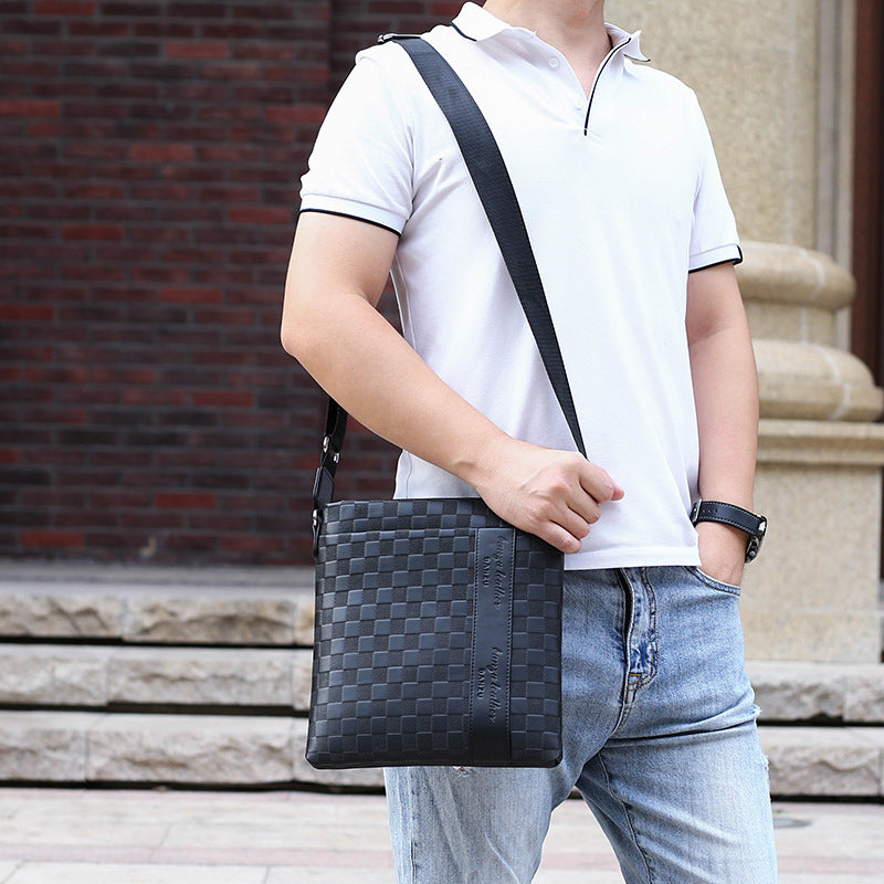 Bolso de hombro para hombre de cuero suave informal de negocios con tablero de ajedrez cruzado todo fósforo