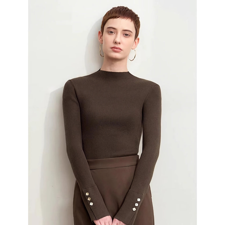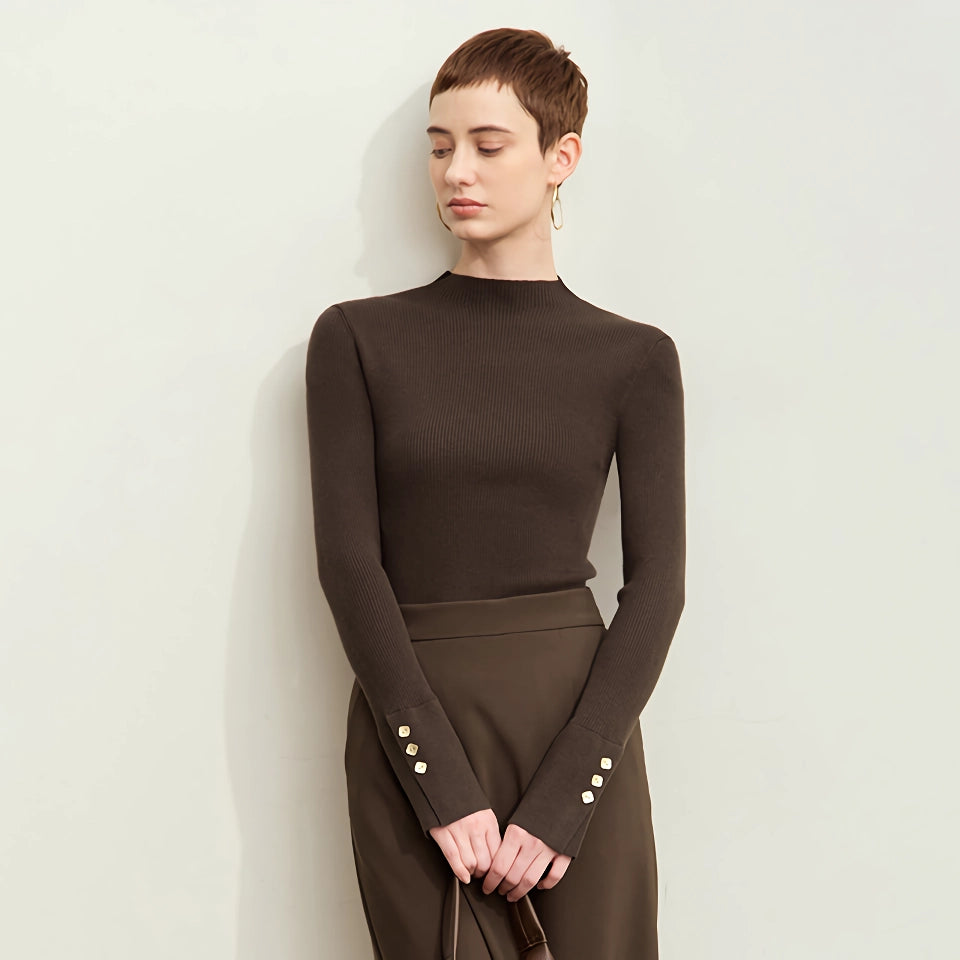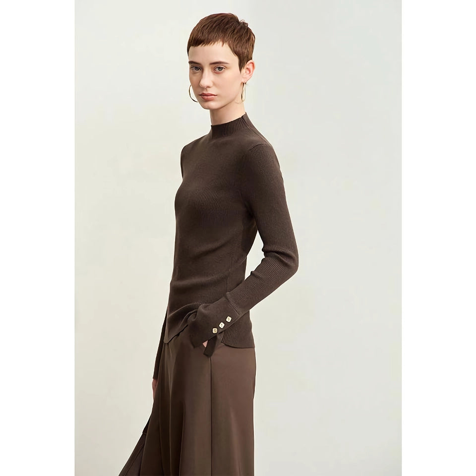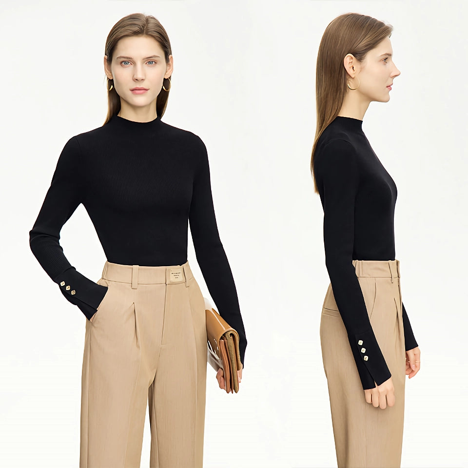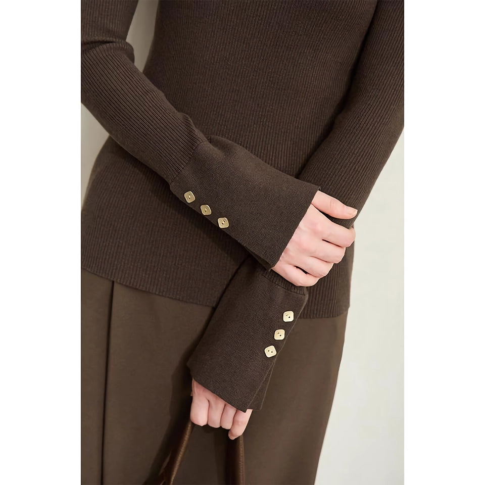 Suéter minimalista de cuello alto con puños con aberturas y hebilla de metal