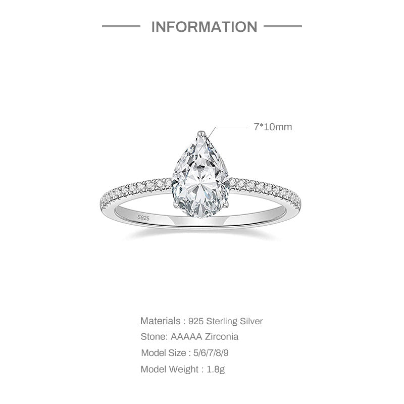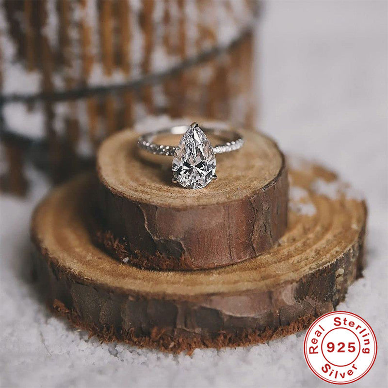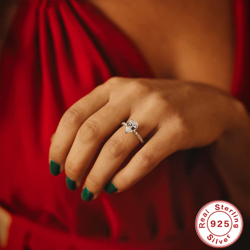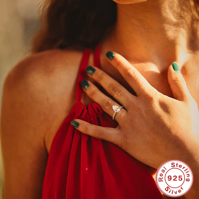 Anillo de compromiso en forma de pera de plata esterlina S925 de 2 quilates
