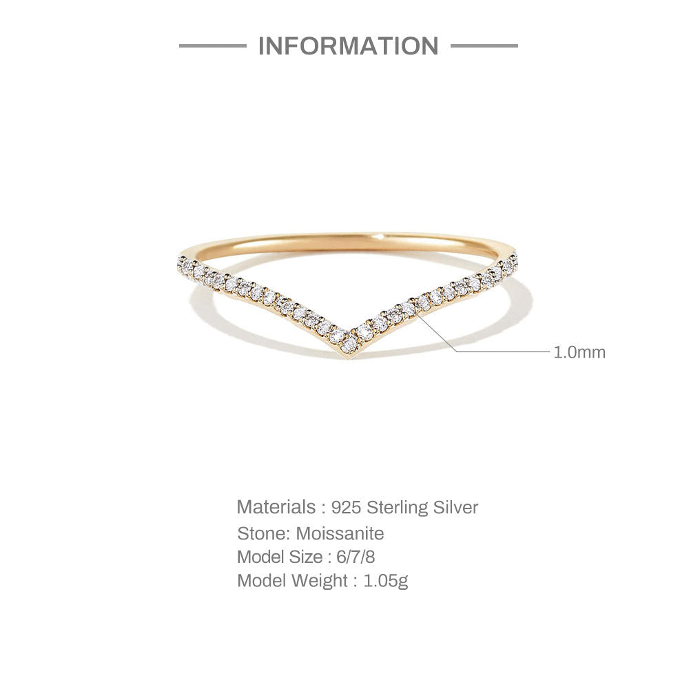 Anillo de diamantes de imitación de moissanita en forma de V de plata esterlina S925