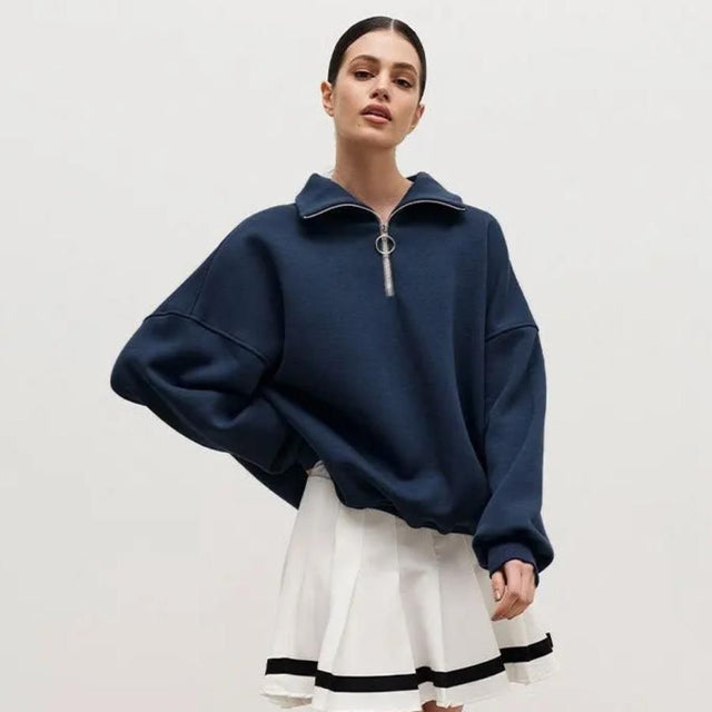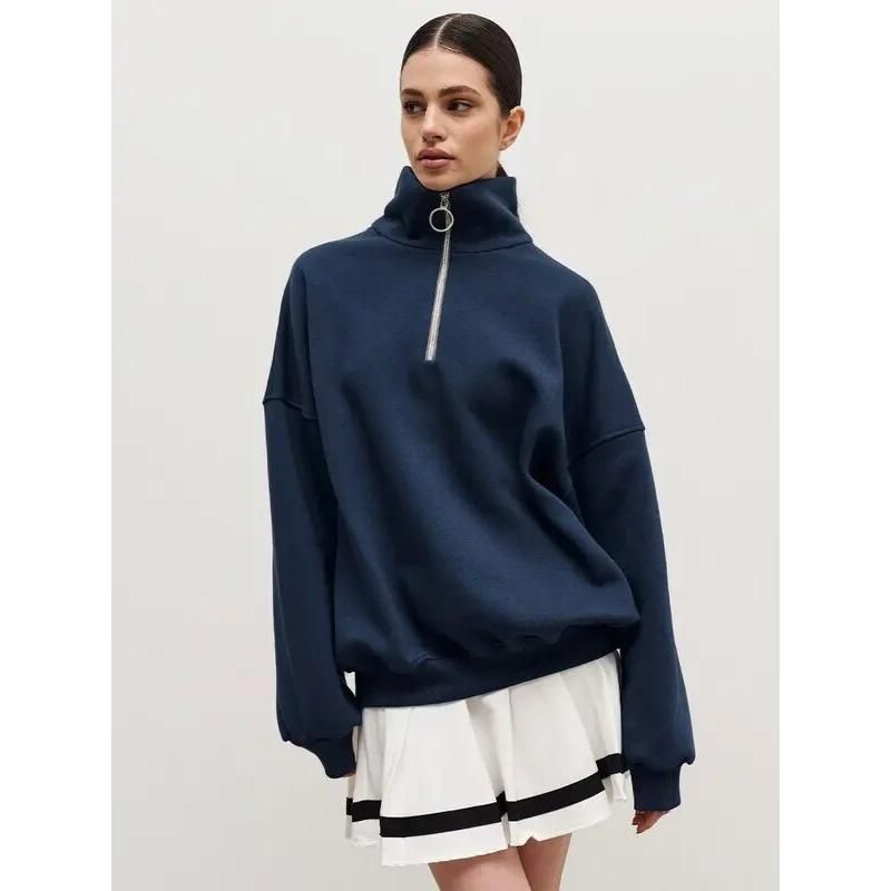 Adopte la combinación perfecta de comodidad y elegancia urbana con nuestro jersey extragrande de cuello alto con forro polar para mujer. Diseñado para la mujer moderna, este jersey es una incorporación imprescindible a su guardarropa y ofrece una solución acogedora pero elegante para esos días y noches más fríos. Ya sea que salga a dar un paseo informal por la ciudad o disfrute de un fin de semana relajado en casa, este jersey promete comodidad y estilo.