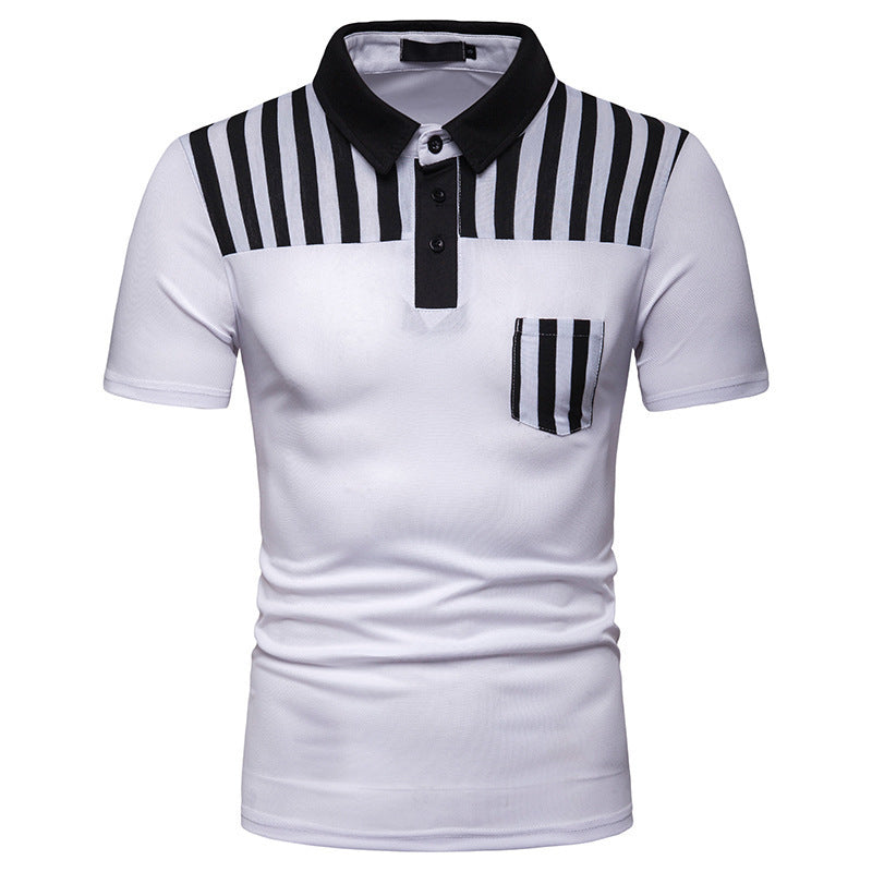 Nueva camisa polo de manga corta con costuras a rayas de talla europea para hombre de verano - Blanco / S está agotado y se enviará tan pronto como vuelva a estar disponible.