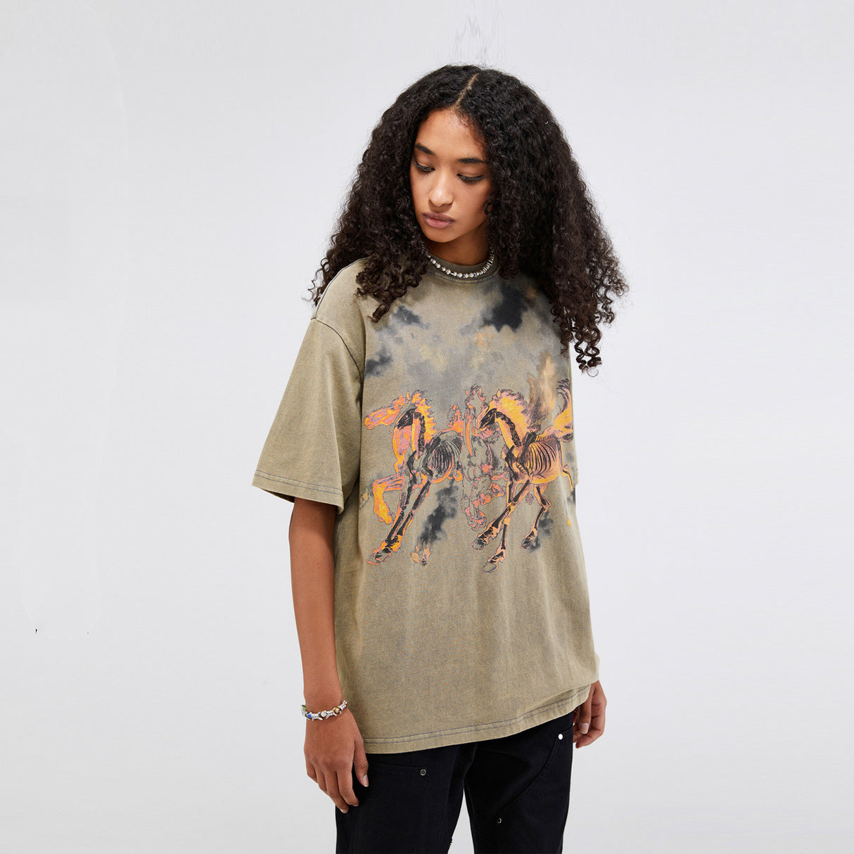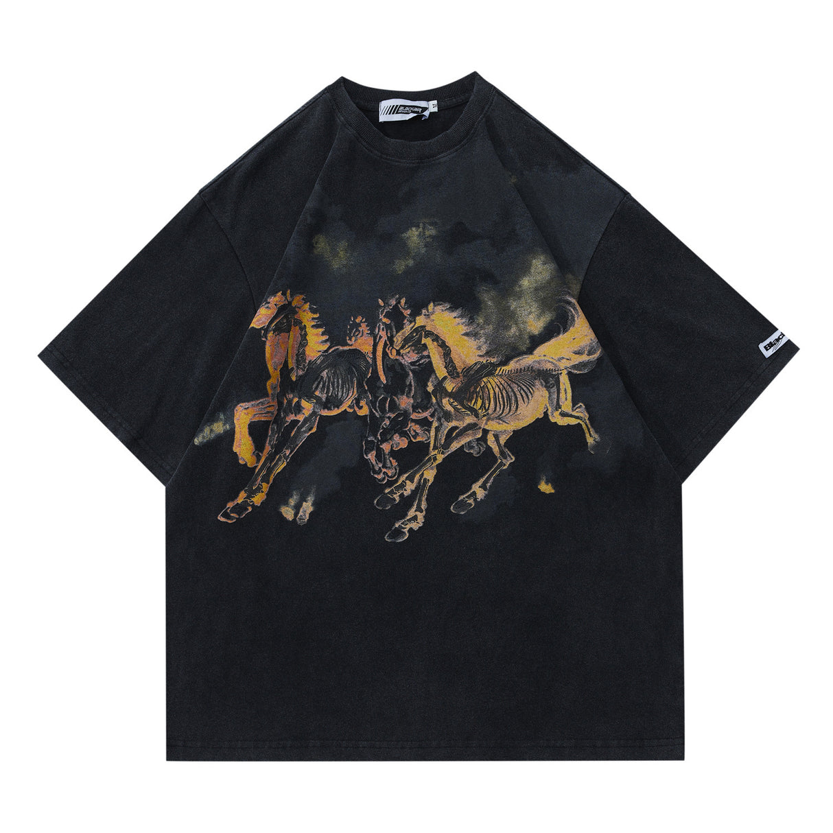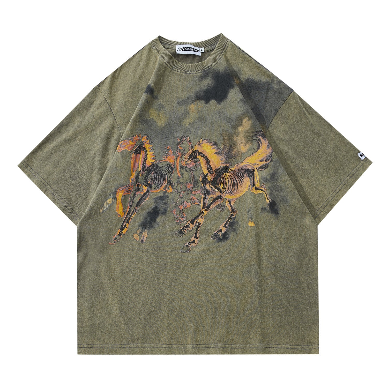 Camiseta de manga corta con estampado de calavera y caballo en llamas para hombre de la marca Street Tide