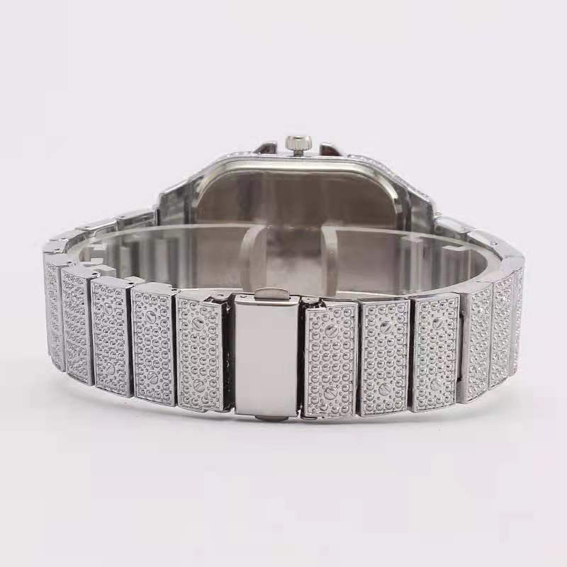 Reloj cuadrado de cuarzo con correa de acero y diamantes