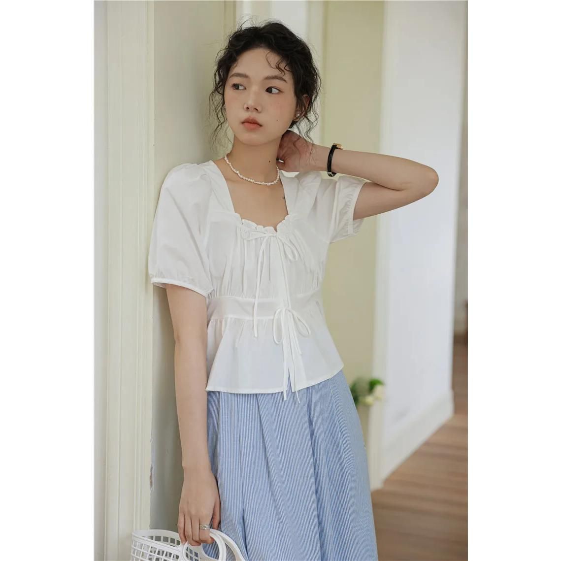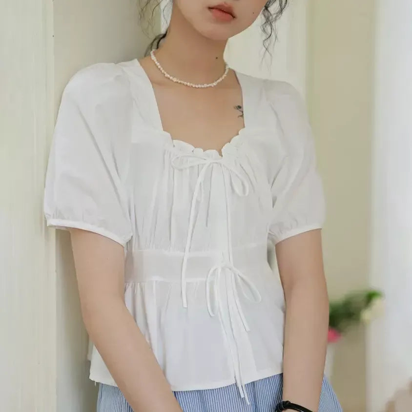 Ya sea que vayas a la oficina, disfrutes de un día con amigos o asistas a un evento informal, nuestra elegante blusa vintage con cuello cuadrado y mangas abullonadas es tu elección preferida. Su patrón sólido y estilo casual lo hacen versátil para cualquier evento, y el tejido no elástico garantiza un ajuste que se mantiene fiel a tu forma. Adecuada para mujeres jóvenes de entre 18 y 24 años, esta blusa es un elemento básico para cualquier guardarropa moderno.
