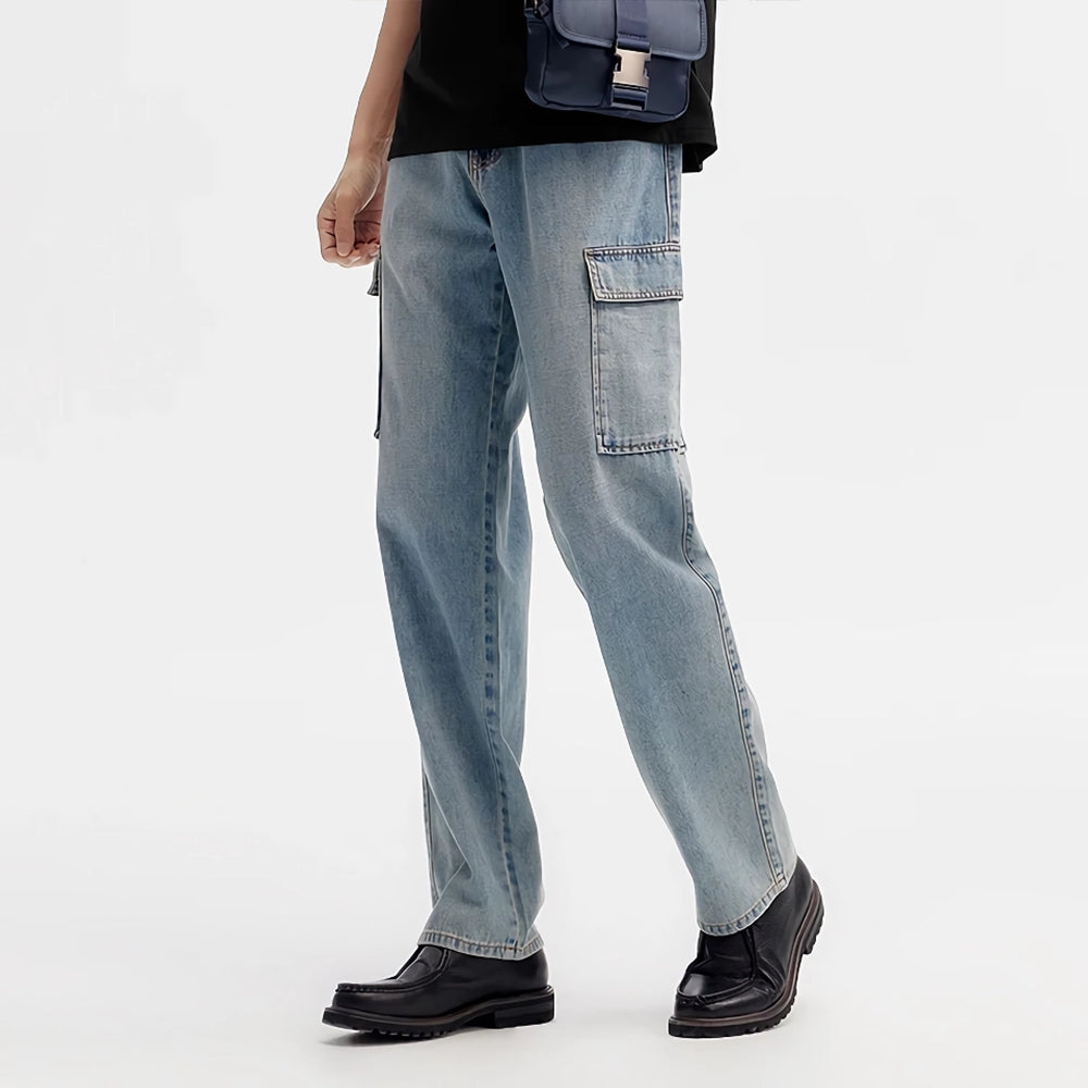 Pantalones vaqueros cargo lavados retro para hombre: pantalones holgados de estilo laboral para verano
