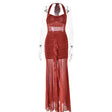 Vestido ajustado sin mangas con escote halter, plisado y espalda descubierta