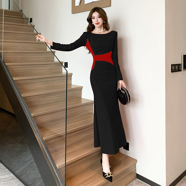 Vestido ajustado de cola de pez con contraste de color elegante de clase alta para mujer