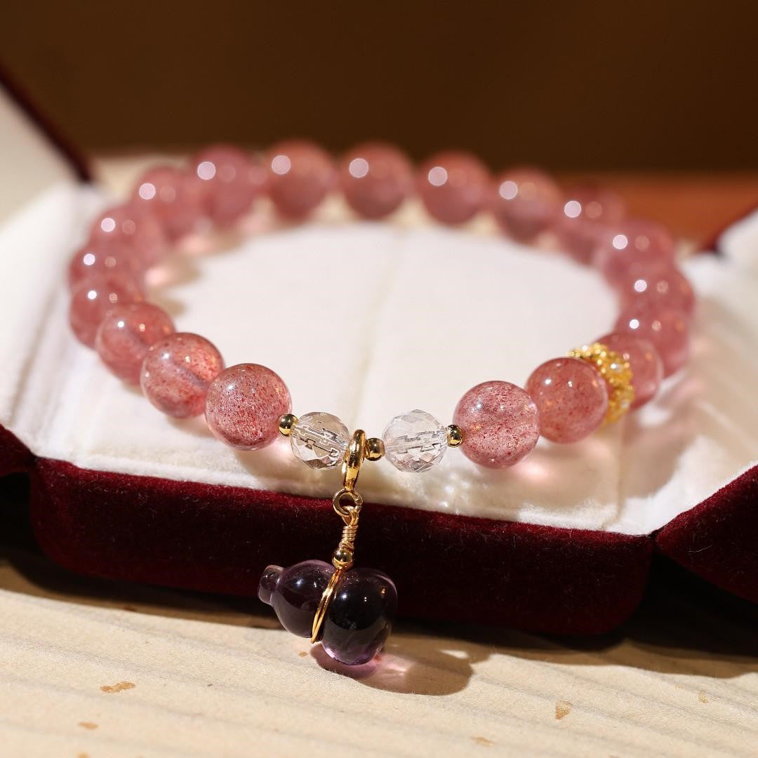 Cadena de cristal de fresa de jade de cuarzo de un solo círculo