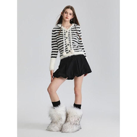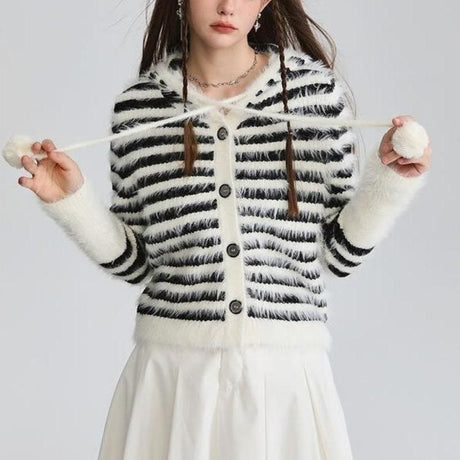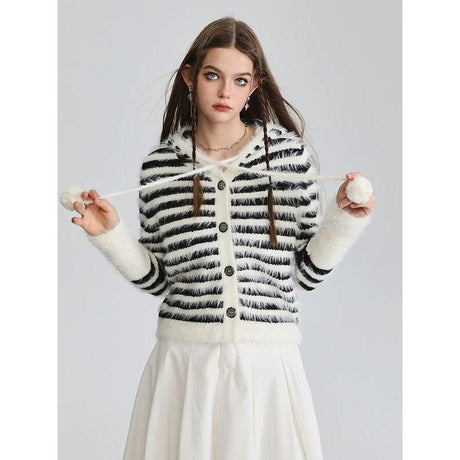 Precio normal $160.00 NZDPrecio unitario /AgotadoCárdigan Mohair con capucha a rayas -...