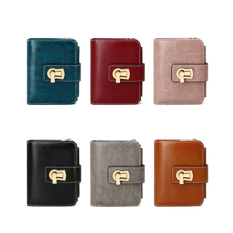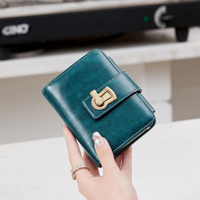 Cartera corta multifuncional de cuero PU retro con cierre giratorio