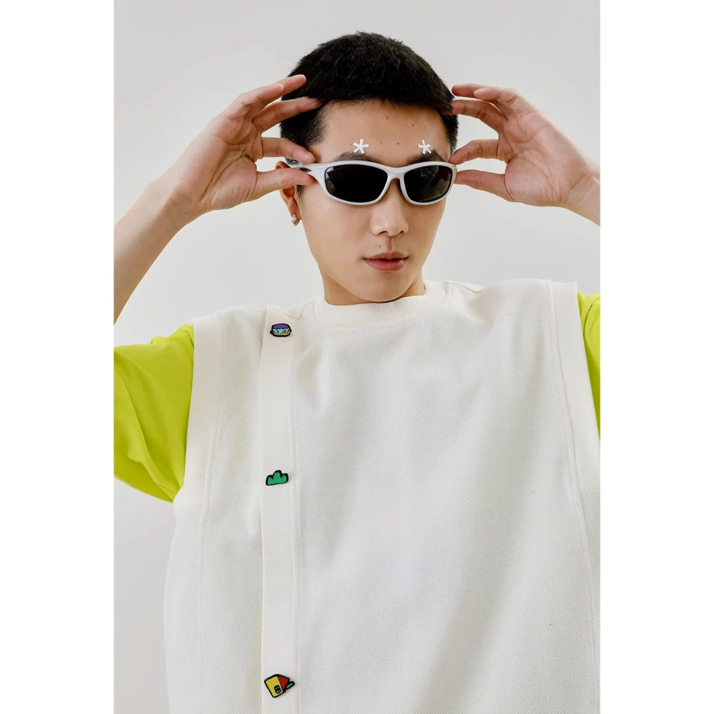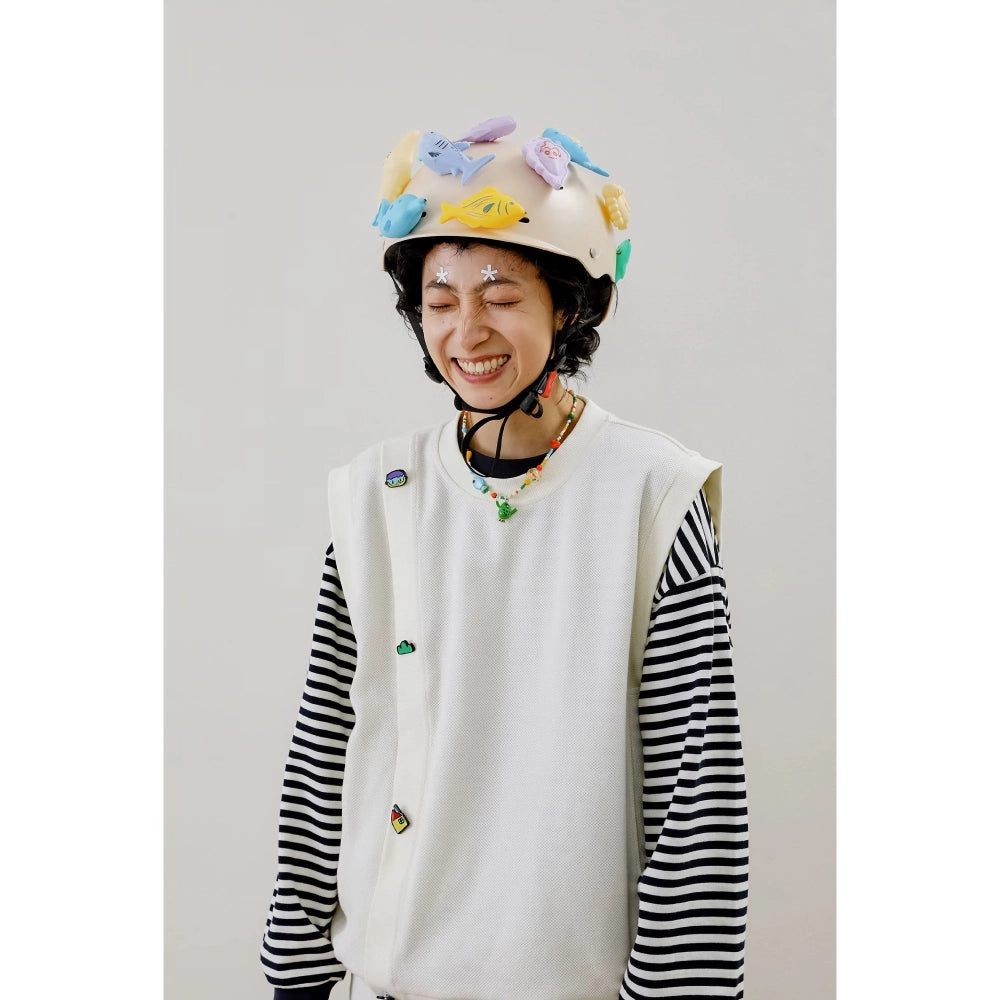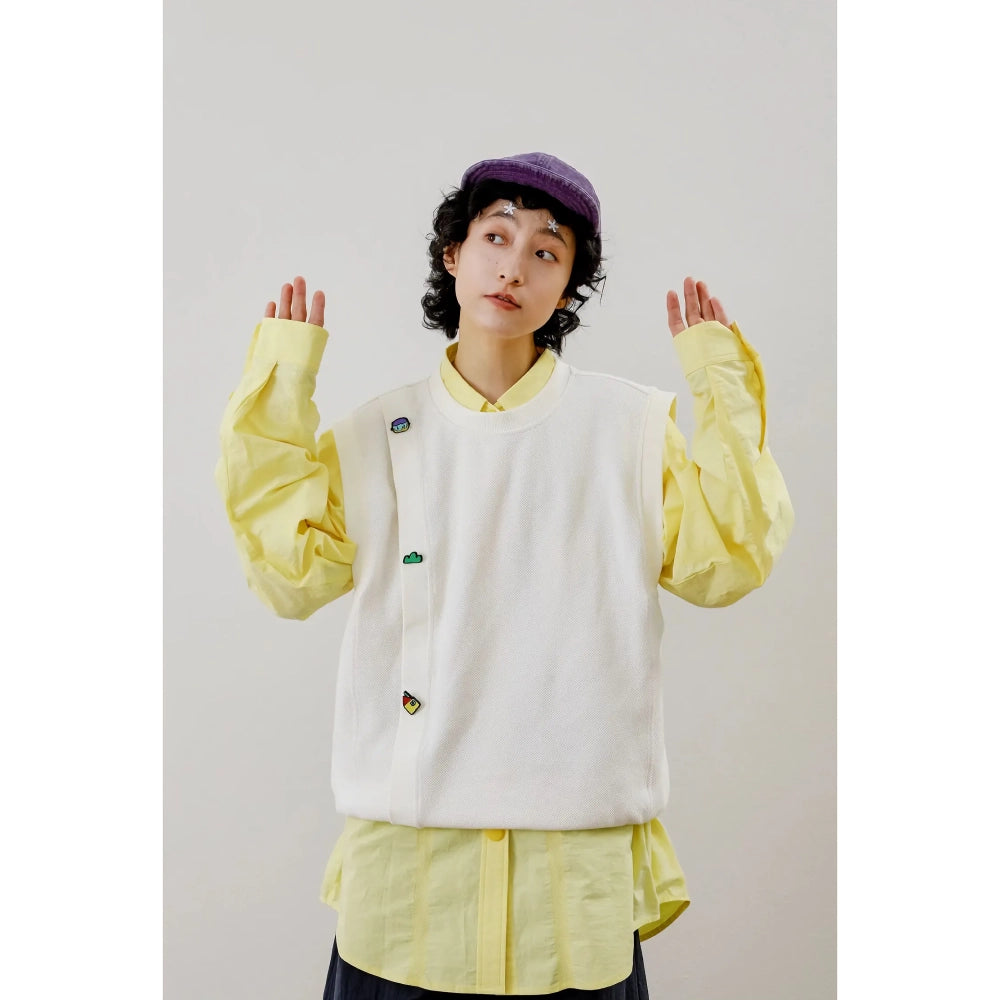 Dale la bienvenida a la temporada con estilo y comodidad con este jersey holgado informal sin mangas. Diseñado para las personas a la moda que valoran tanto la estética como la comodidad, este jersey de algodón beige es tu prenda ideal para cualquier ocasión informal. La llamativa decoración tridimensional de dibujos animados añade un toque divertido y lo convierte en una pieza única en tu armario.