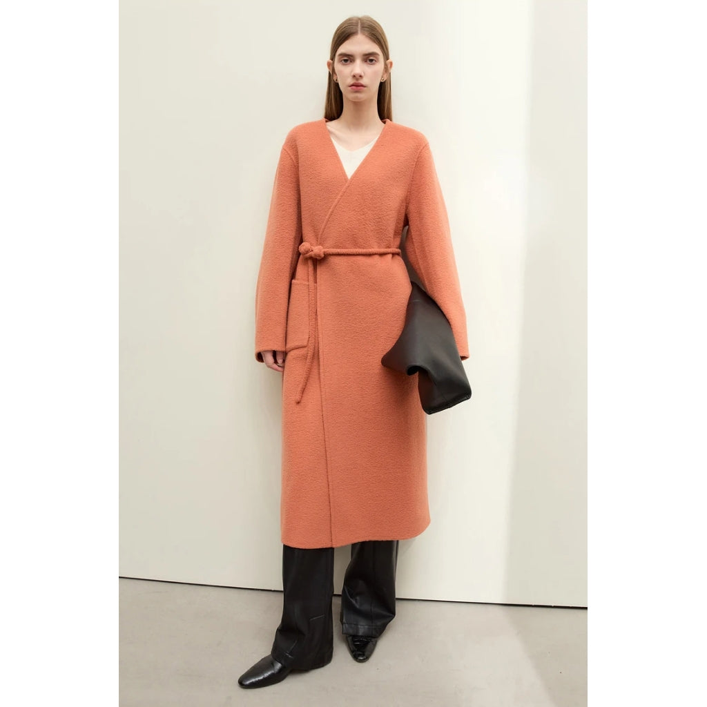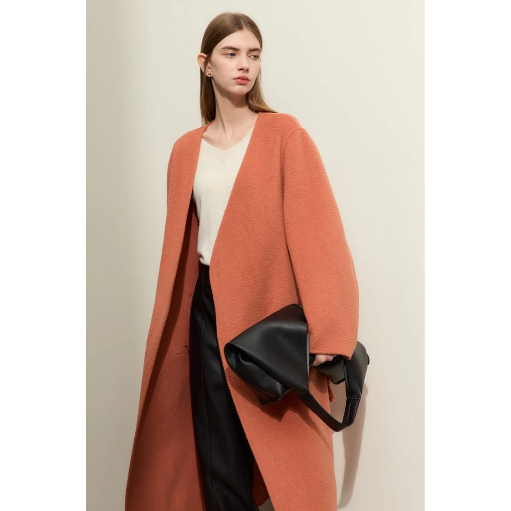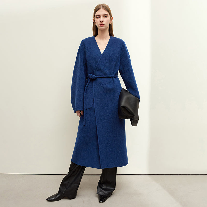 Da la bienvenida a la temporada con gracia y estilo con nuestro elegante abrigo de lana otoñal. Diseñado para la mujer moderna, este abrigo combina la estética tradicional china con la moda contemporánea. El escote en V y la mezcla de lana de doble cara garantizan que te mantengas abrigada y luzcas elegante sin esfuerzo, ya sea que vayas a un evento formal o a una salida informal.