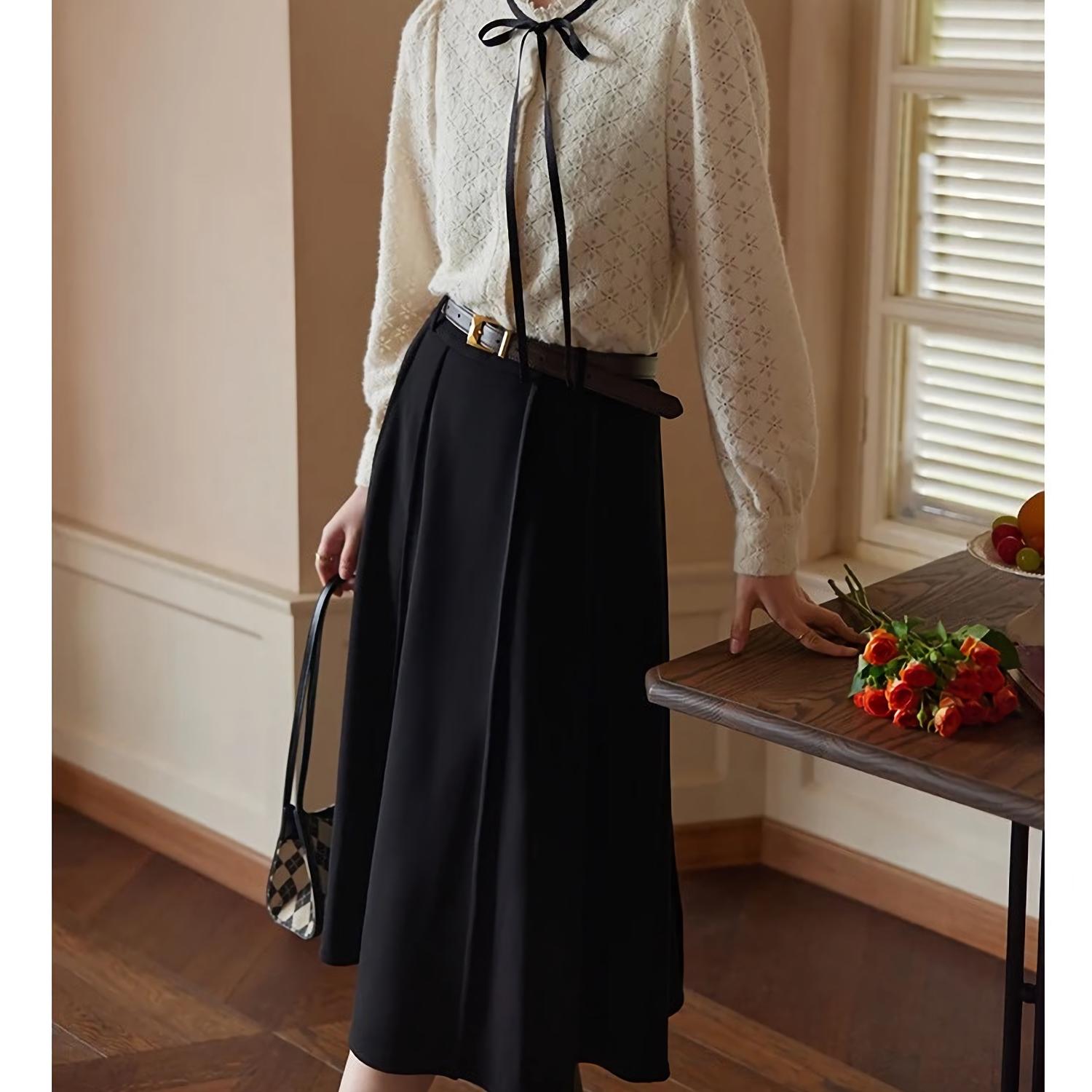 Da un paso hacia la sofisticación con nuestra falda de talle alto en forma de A, diseñada para la mujer profesional moderna. Esta falda hasta la mitad de la pantorrilla combina estilo y comodidad sin esfuerzo, lo que la convierte en una prenda versátil para tu guardarropa de otoño e invierno. Con su diseño simple pero elegante, esta falda es perfecta para cualquier entorno de oficina, y te garantiza un aspecto elegante y refinado durante tu ajetreado día.