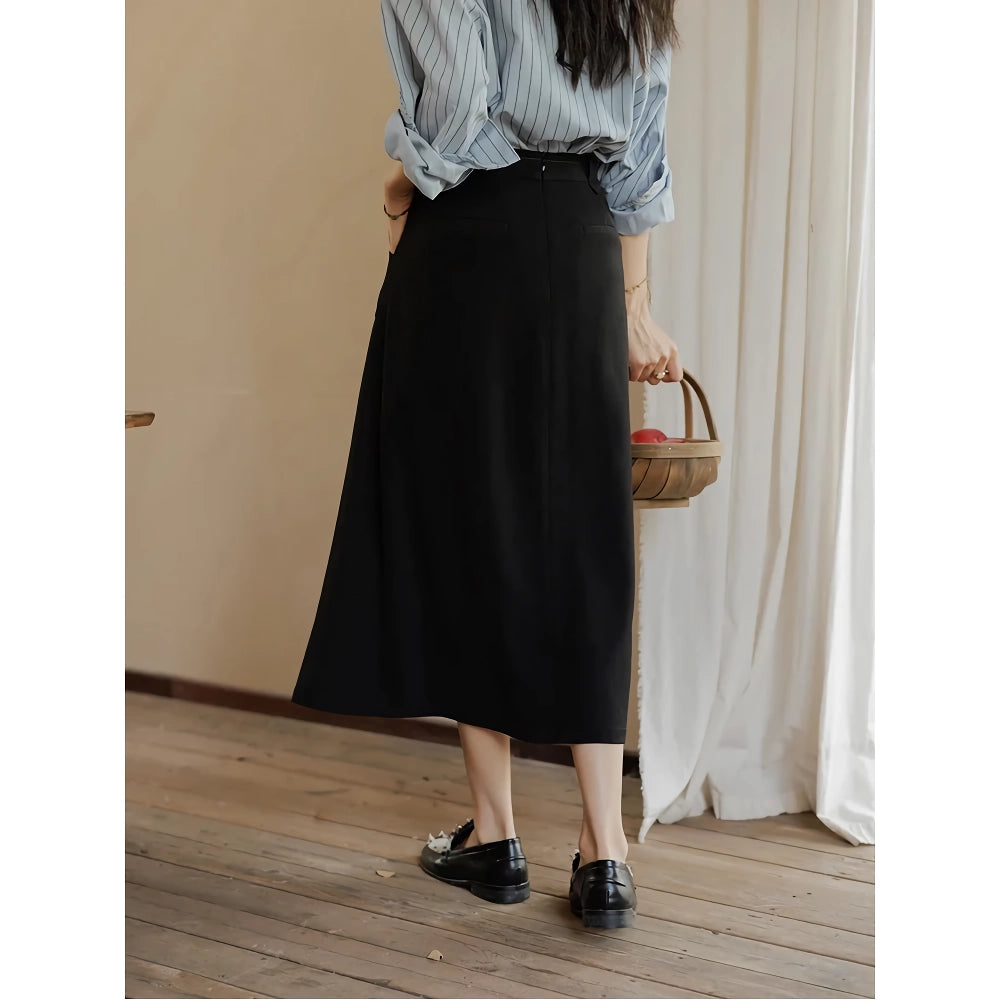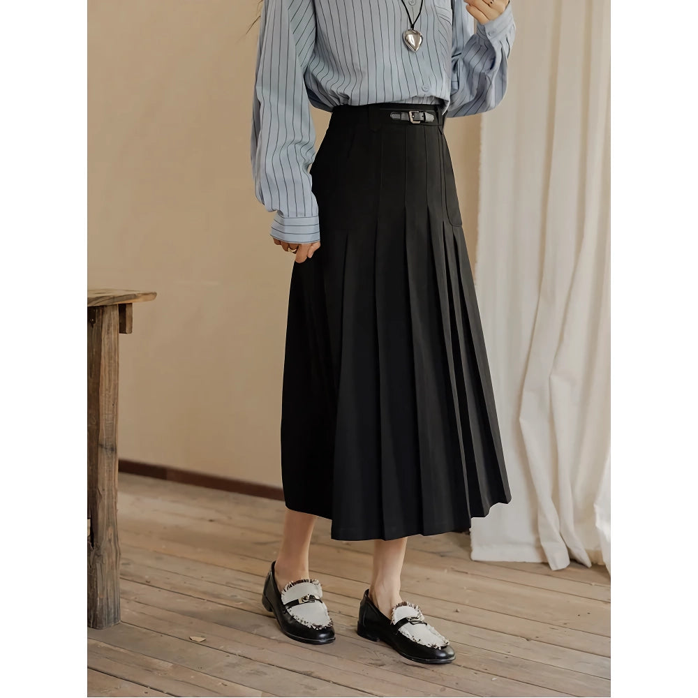 No te pierdas esta incorporación esencial a tu vestuario profesional. Haz clic en el enlace para agregar la falda plisada de cintura alta con cinturón decorativo y bolsillos a tu carrito ahora y realza tu estilo de oficina con elegancia atemporal.