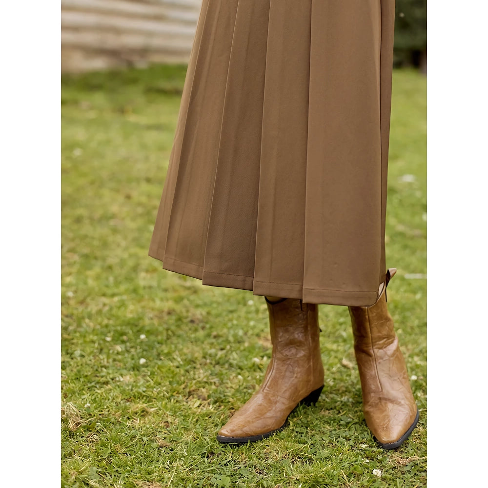 Nuestra falda plisada de talle alto en forma de A está repleta de características que la convierten en una incorporación versátil a tu armario. Esto es lo que la distingue: