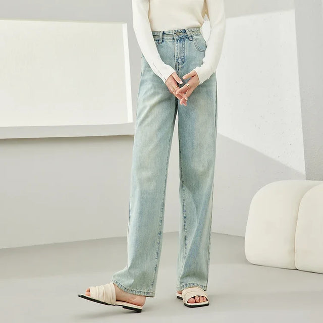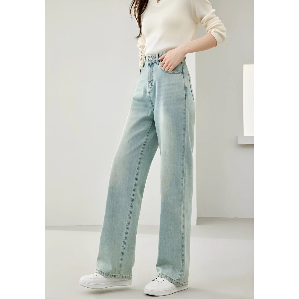Pantalones vaqueros de cintura alta y pierna ancha para mujer: pantalones casuales retro de color azul claro - XS está agotado y se enviará tan pronto como vuelva a estar disponible.