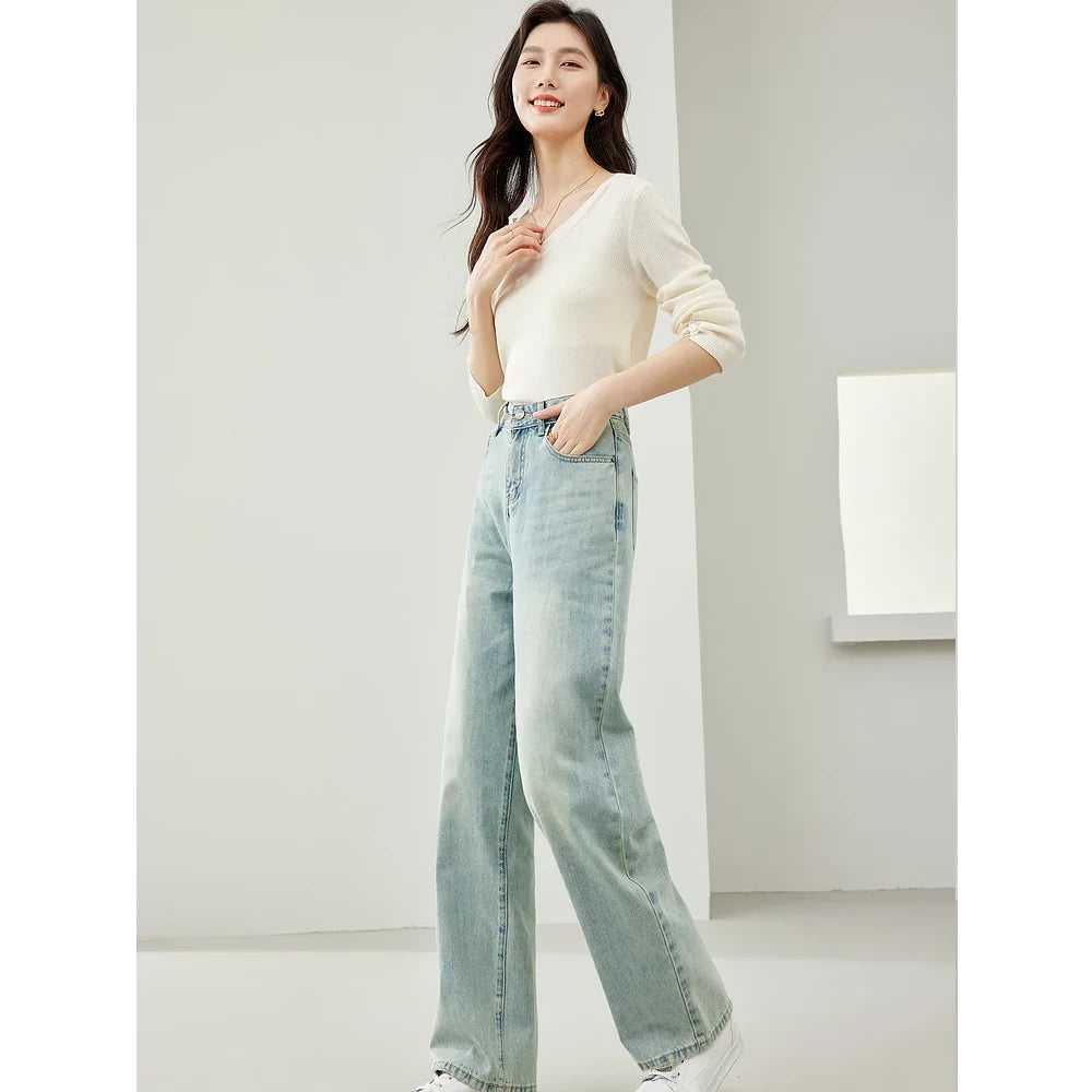 La combinación de materiales de alta calidad, un diseño bien pensado y la atención al detalle distinguen a estos jeans del resto. El lavado azul claro retro les da un atractivo atemporal, mientras que la cintura alta y el corte ancho de las piernas brindan un toque contemporáneo. Estos jeans no solo son cuestión de estilo; también te hacen sentir segura y cómoda contigo misma.Beneficios que te encantarán