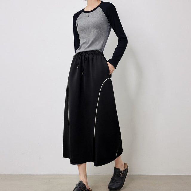 Falda elegante de otoño de longitud media en forma de A con cintura elástica