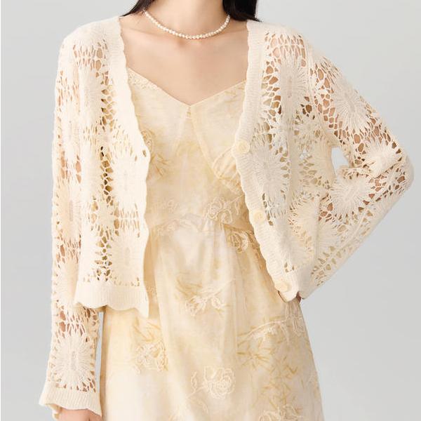 Este cárdigan, confeccionado en 100 % algodón, ofrece una sensación suave y transpirable, perfecta para las estaciones más frías. Las mangas largas brindan una amplia cobertura, mientras que el cierre de botonadura sencilla agrega un toque clásico. La tela no elástica del cárdigan garantiza un ajuste estructurado, ideal para usar sobre tus blusas favoritas. La decoración de encaje realza su atractivo general, lo que lo convierte en una pieza versátil para diversas ocasiones.- Material: 100% algodón para máxima comodidad.