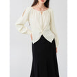 Blusa informal romántica de manga larga estilo francés de otoño para mujer - XXL / Marfil está agotado y se enviará tan pronto como vuelva a estar disponible.