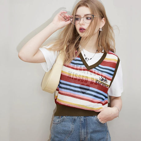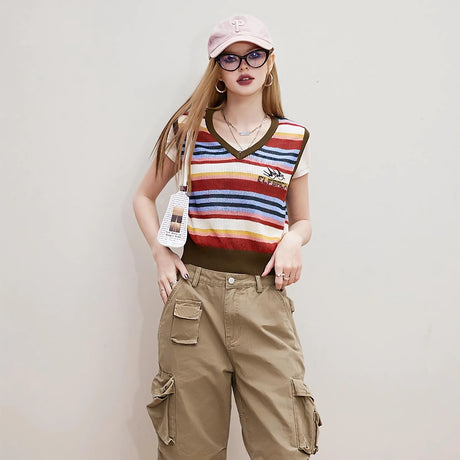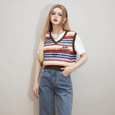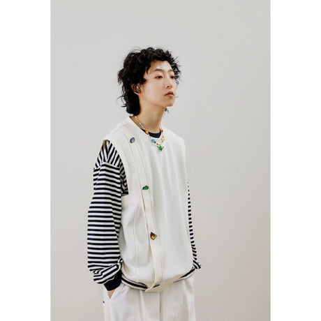 Precio normal $740.00 SGDPrecio unitario /AgotadoChaleco de punto con cuello en V y rayas