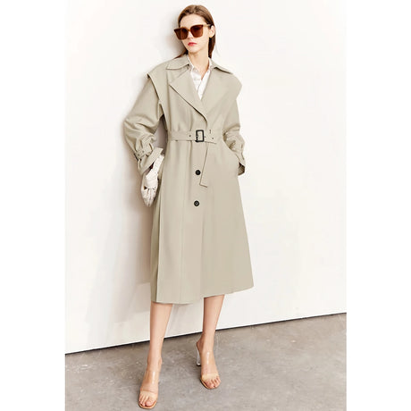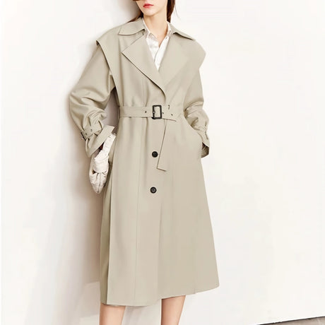 Precio normal $695.00 SGDPrecio unitario /AgotadoGabardina larga minimalista para muje...