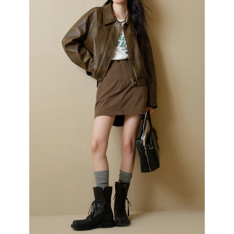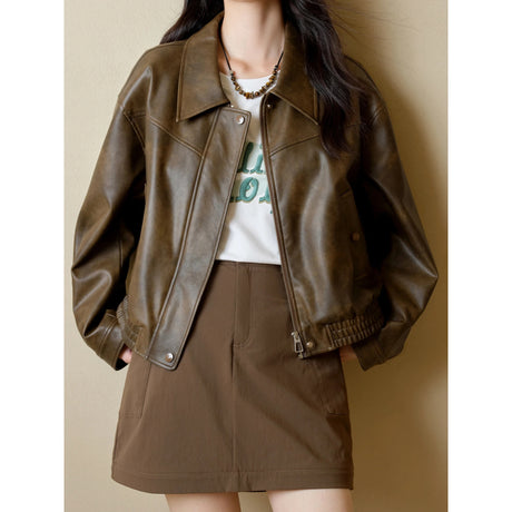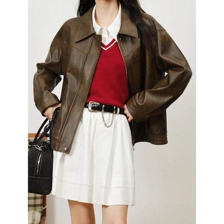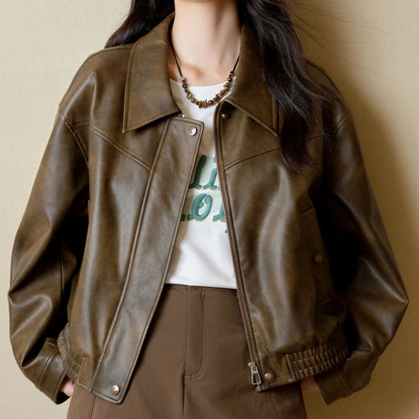 Precio normal $921.00 SGDPrecio unitario /AgotadoChaqueta de cuero retro elegante y mo...