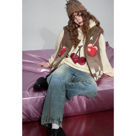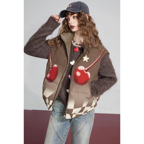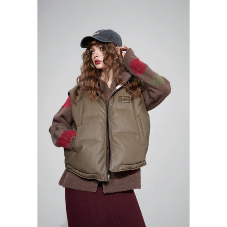 Precio normal $885.00 SGDPrecio unitario /AgotadoChaleco grueso de PU marrón con gráfi...