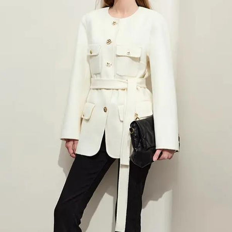 Precio normal $188.00 SGDPrecio unitario /AgotadoElegante abrigo corto de mezcla de la...