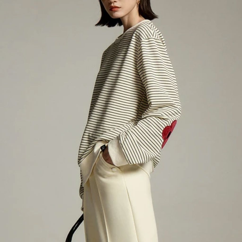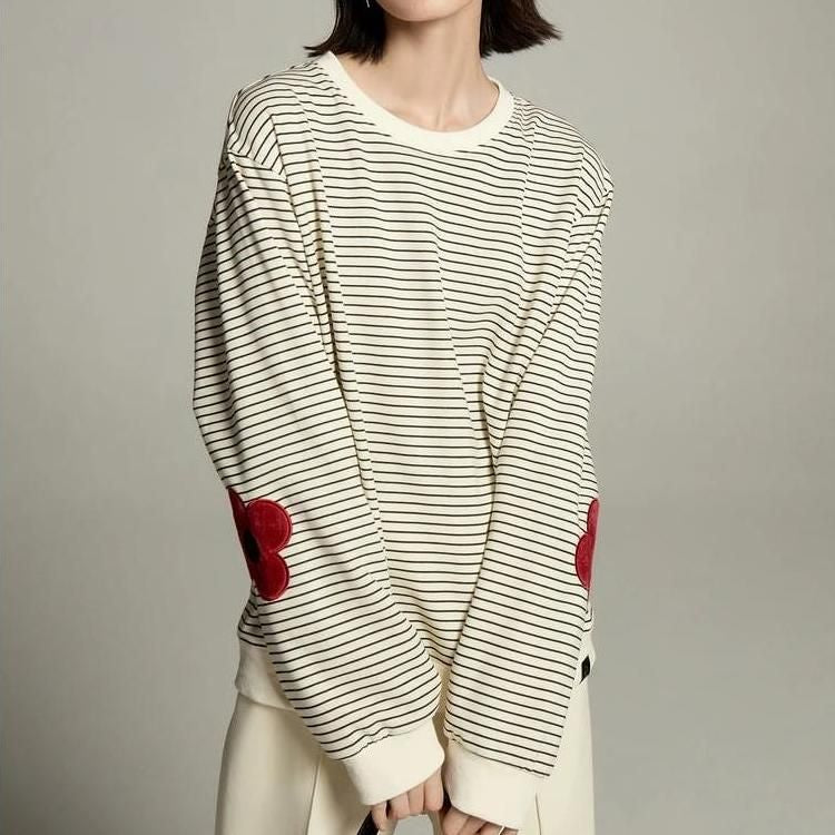 Sudadera con bordado de flores a rayas blancas y negras para mujer