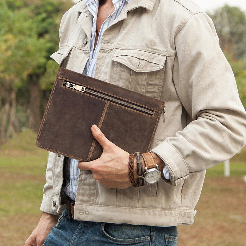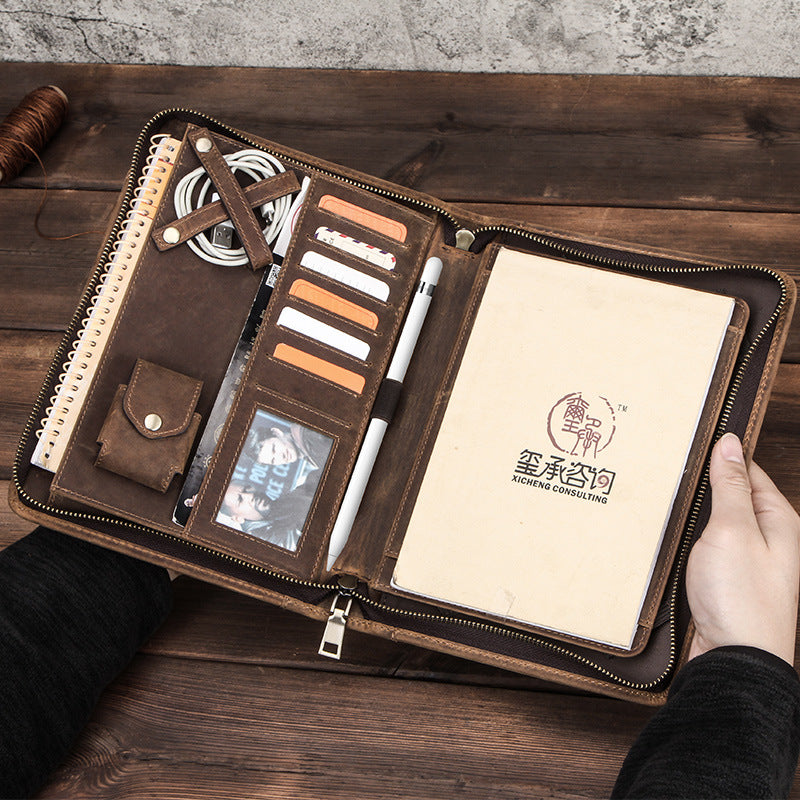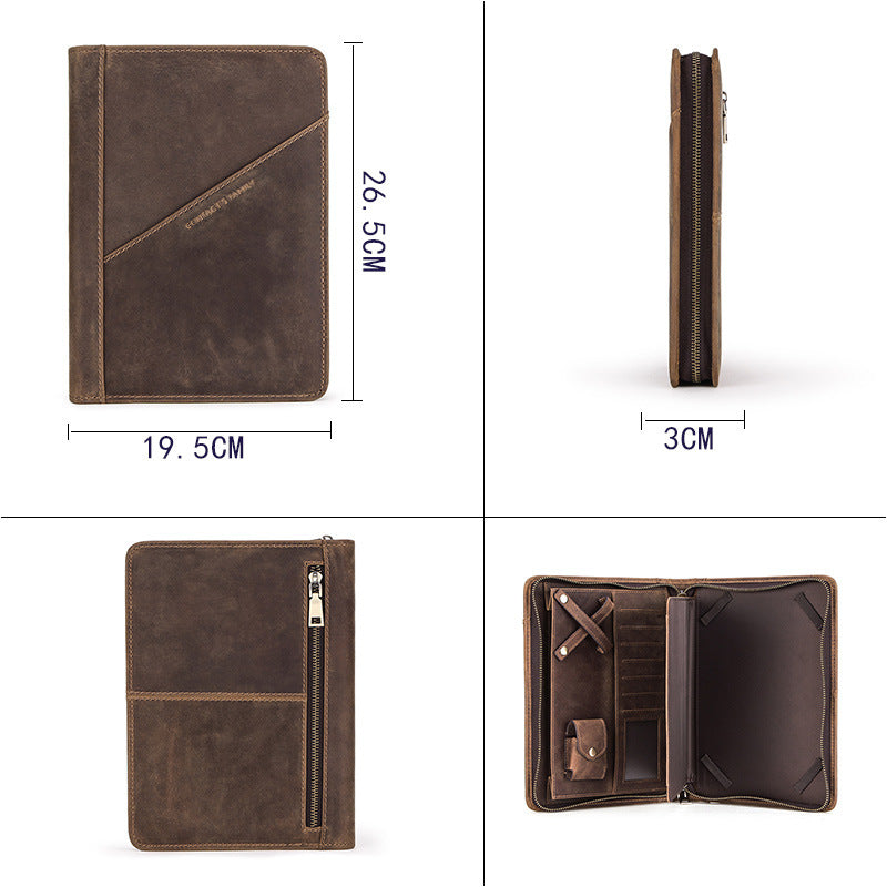 Estuche de cuero plano multifuncional con cremallera de cuero