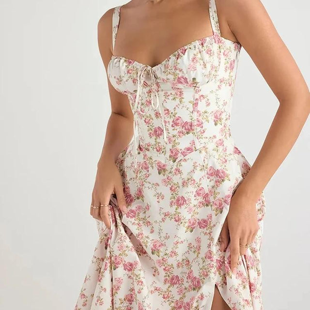 Este vestido a media pantorrilla presenta un estampado floral vibrante que agrega un toque de belleza inspirada en la naturaleza a tu guardarropa. El cuello cuadrado y el diseño sin mangas crean un escote favorecedor, ideal para exhibir joyas delicadas. La cintura alta y la silueta en forma de A acentúan tu figura, mientras que la tela tejida no elástica garantiza un ajuste estructurado que se mueve con gracia. Los detalles de cordones no solo realzan la espalda, sino que también permiten un ajuste ajustable, lo que hace que este vestido sea tan cómodo como elegante.