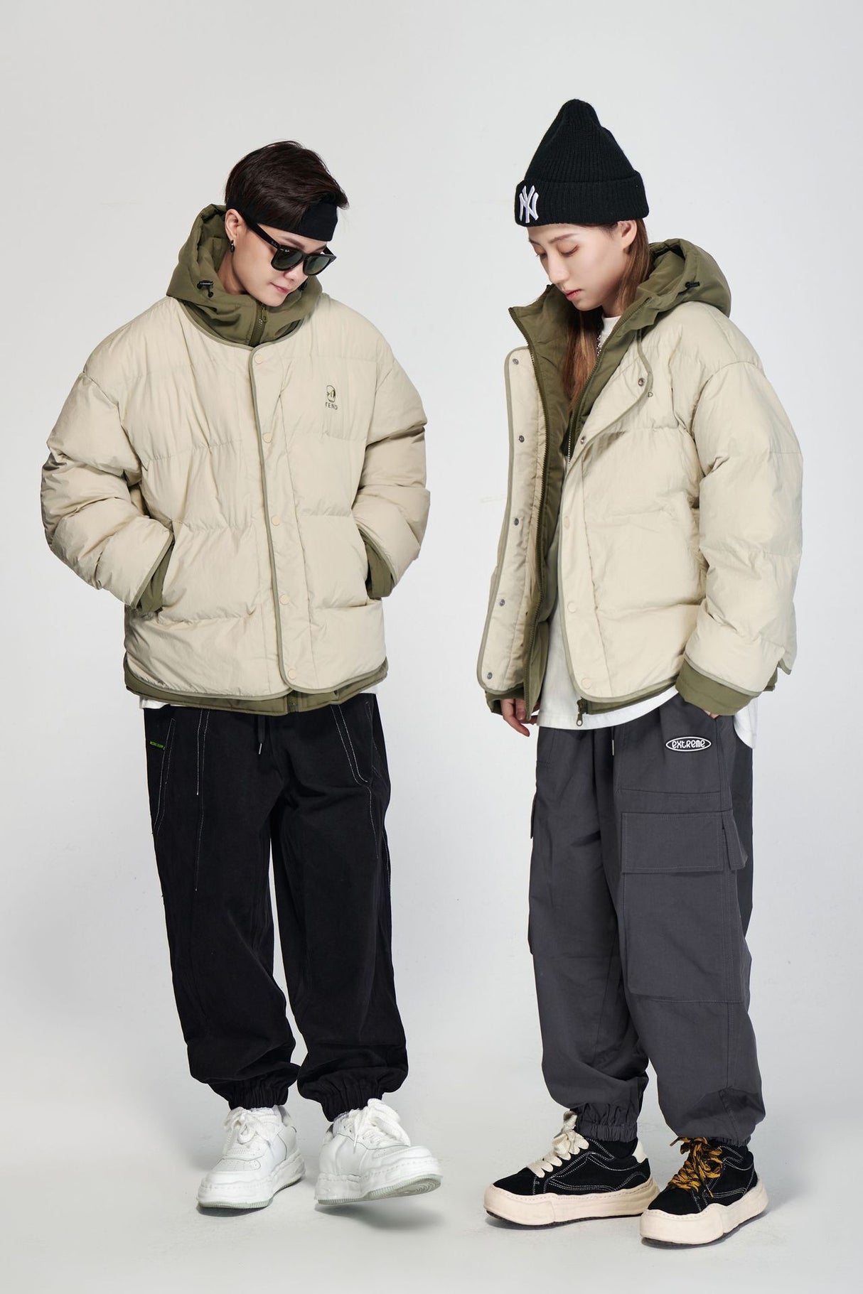 Chaqueta de trabajo con capucha de dos piezas falsa retro Chaqueta acolchada de algodón Chaqueta gruesa y cálida