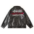 Abrigo de cuero suelto con letras bordadas antiguas de estilo americano para hombre