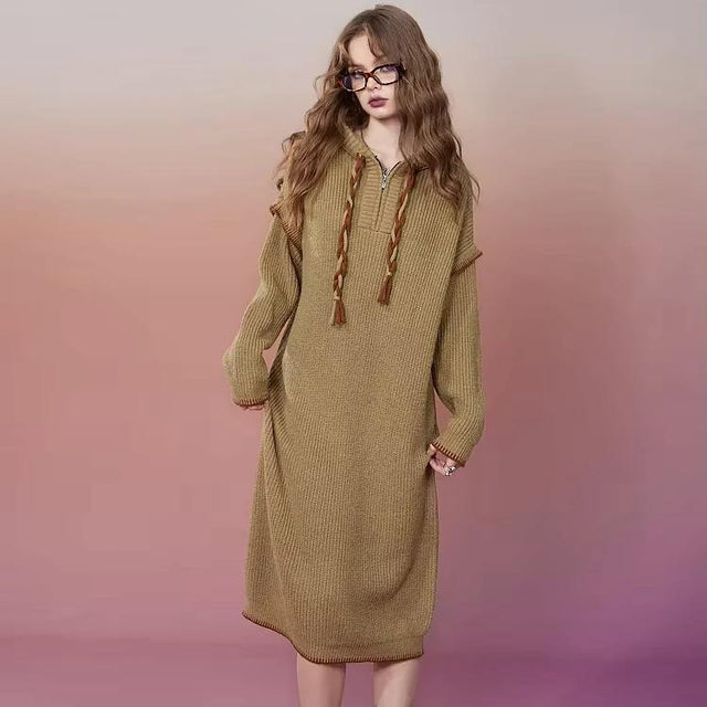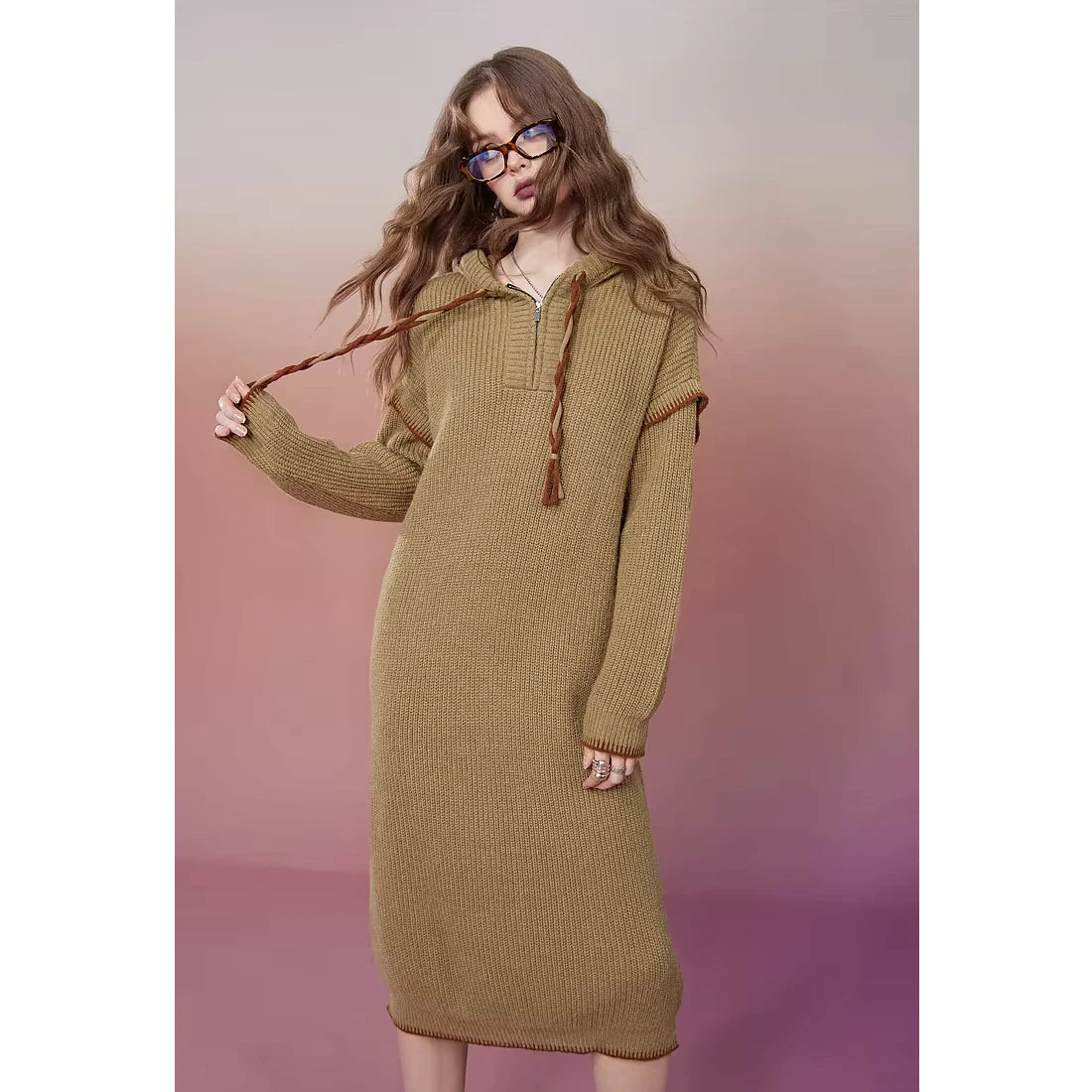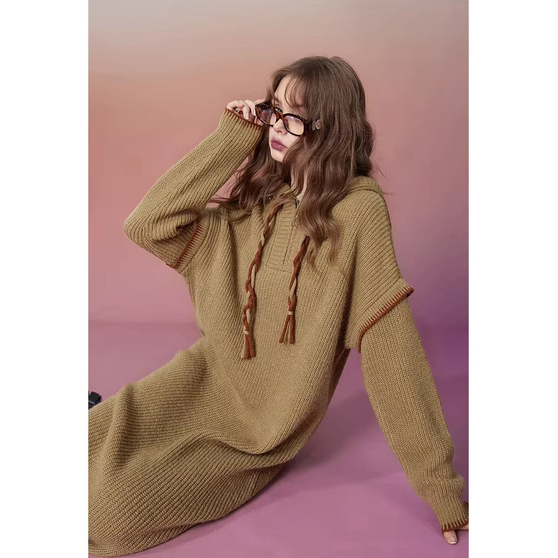 Este vestido de punto con capucha es tu prenda favorita para las temporadas de otoño e invierno. Ya sea que salgas a pasar un día informal con amigos o te relajes en casa, este vestido ofrece la combinación perfecta de estilo y comodidad. El escote con capucha proporciona una calidez adicional en los días más fríos, mientras que el corte holgado permite combinarlo fácilmente con tus accesorios favoritos.