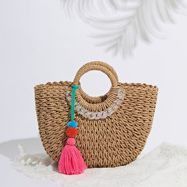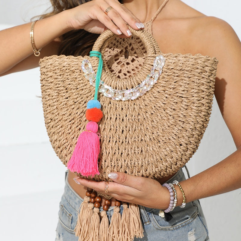 Bolso de playa de ratán tejido a mano con cadena acrílica