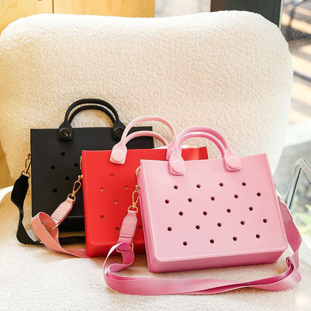Lo que distingue a este bolso de mano es su combinación de moda y funcionalidad. El material EVA impermeable garantiza que tus artículos se mantengan a salvo del agua y la arena, mientras que el diseño elegante añade un toque de estilo a tus salidas. El bolso también está diseñado para adaptarse a dijes, lo que te permite personalizarlo y hacerlo exclusivamente tuyo. Su versatilidad significa que se puede utilizar para una amplia gama de actividades, lo que lo convierte en una valiosa incorporación a tu colección.