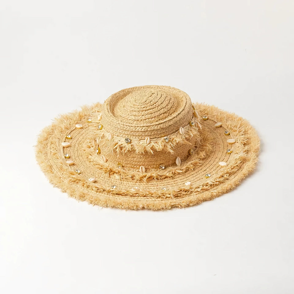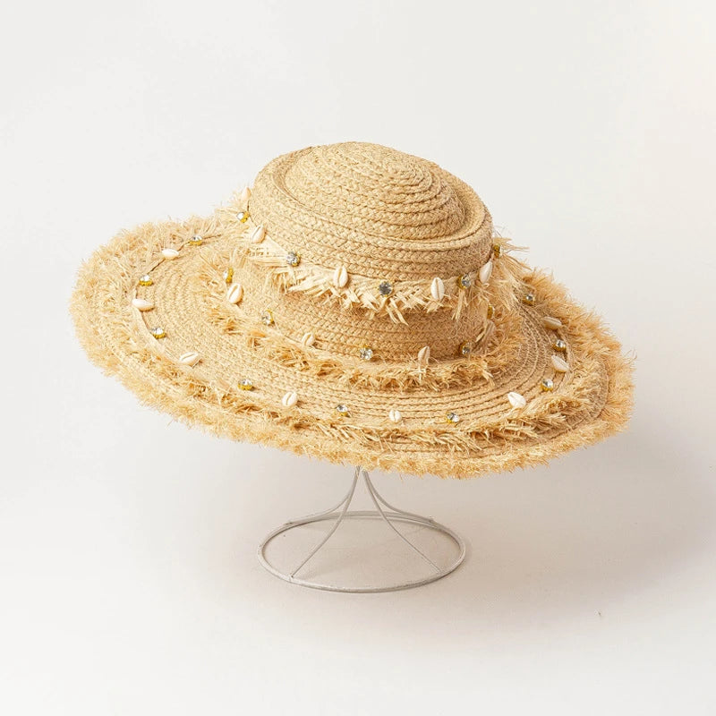 Abraza el sol mientras te mantienes fresco y elegante con nuestro Chic Raffia Sun Hat. Confeccionado a mano con rafia de alta calidad, este sombrero es un accesorio imprescindible para cualquier amante de la playa o del aire libre que busque combinar moda con funcionalidad. La elegante decoración de conchas añade un toque de encanto costero, lo que la convierte en una incorporación destacada a tu guardarropa de verano.