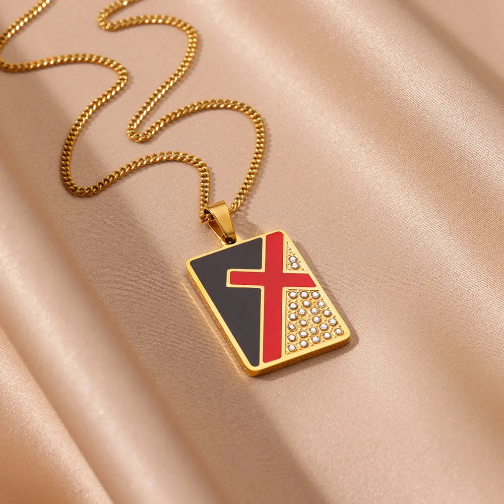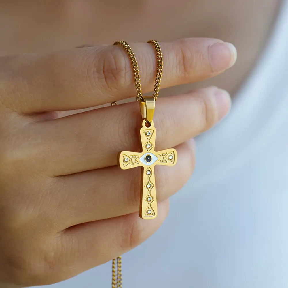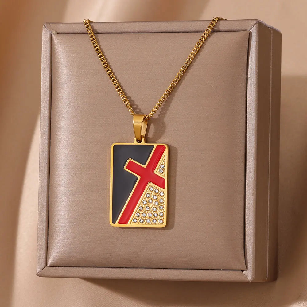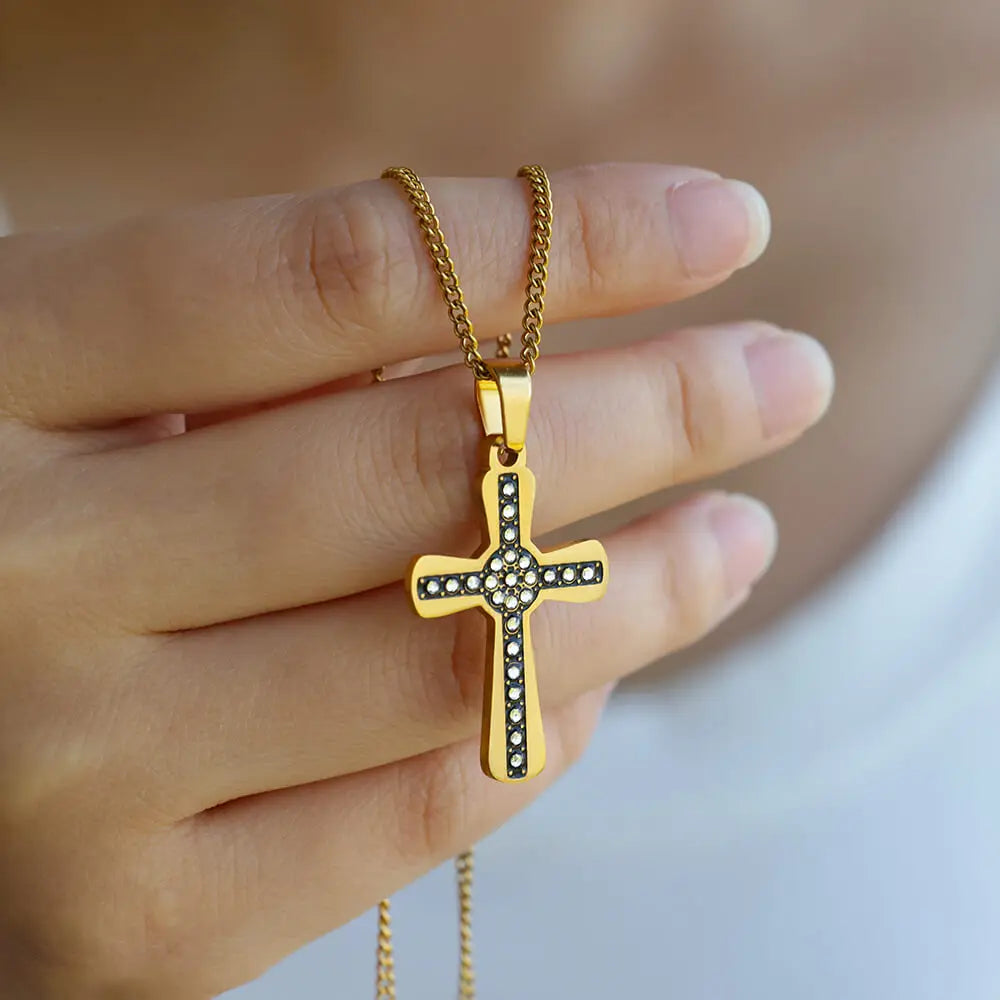 Collar con colgante de cruz de acero inoxidable y circonita cúbica: joyería religiosa de moda