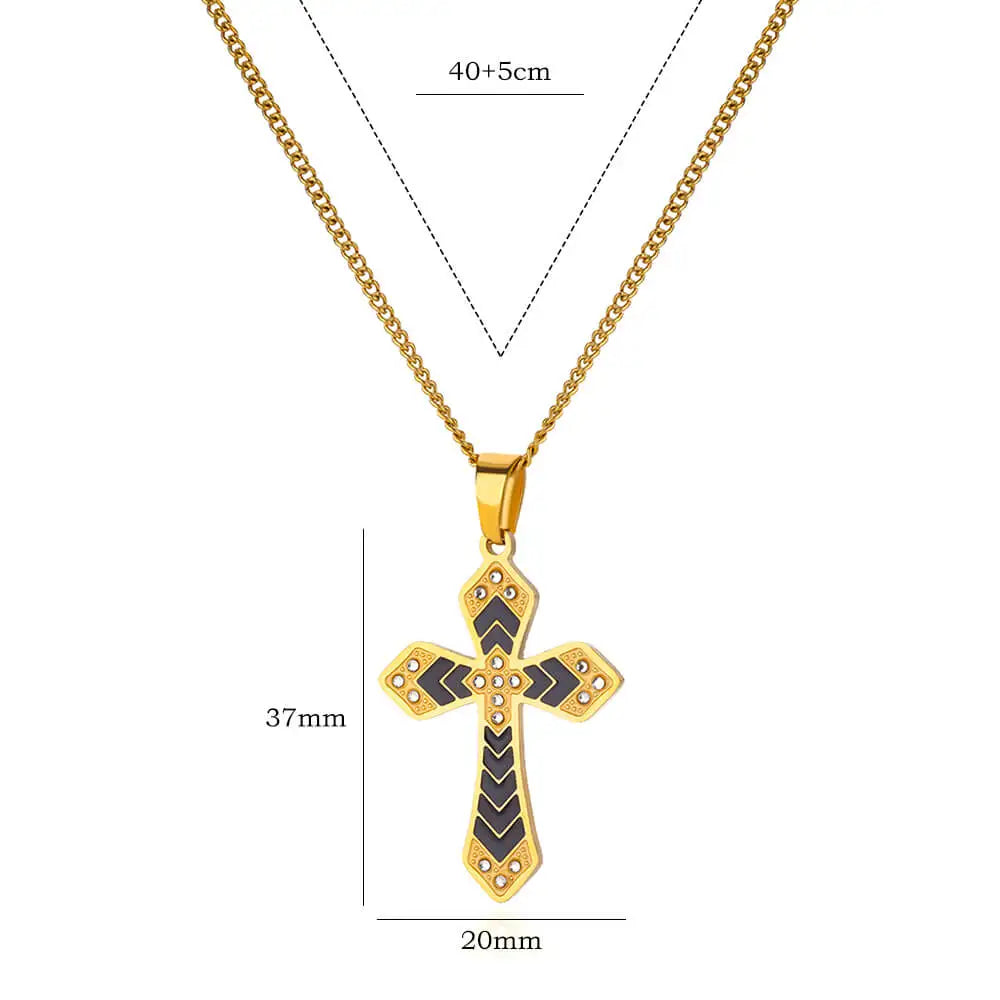 Collar con colgante de cruz de acero inoxidable y circonita cúbica: joyería religiosa de moda - Oro y metal negro con gemas está agotado y se enviará tan pronto como vuelva a estar disponible.