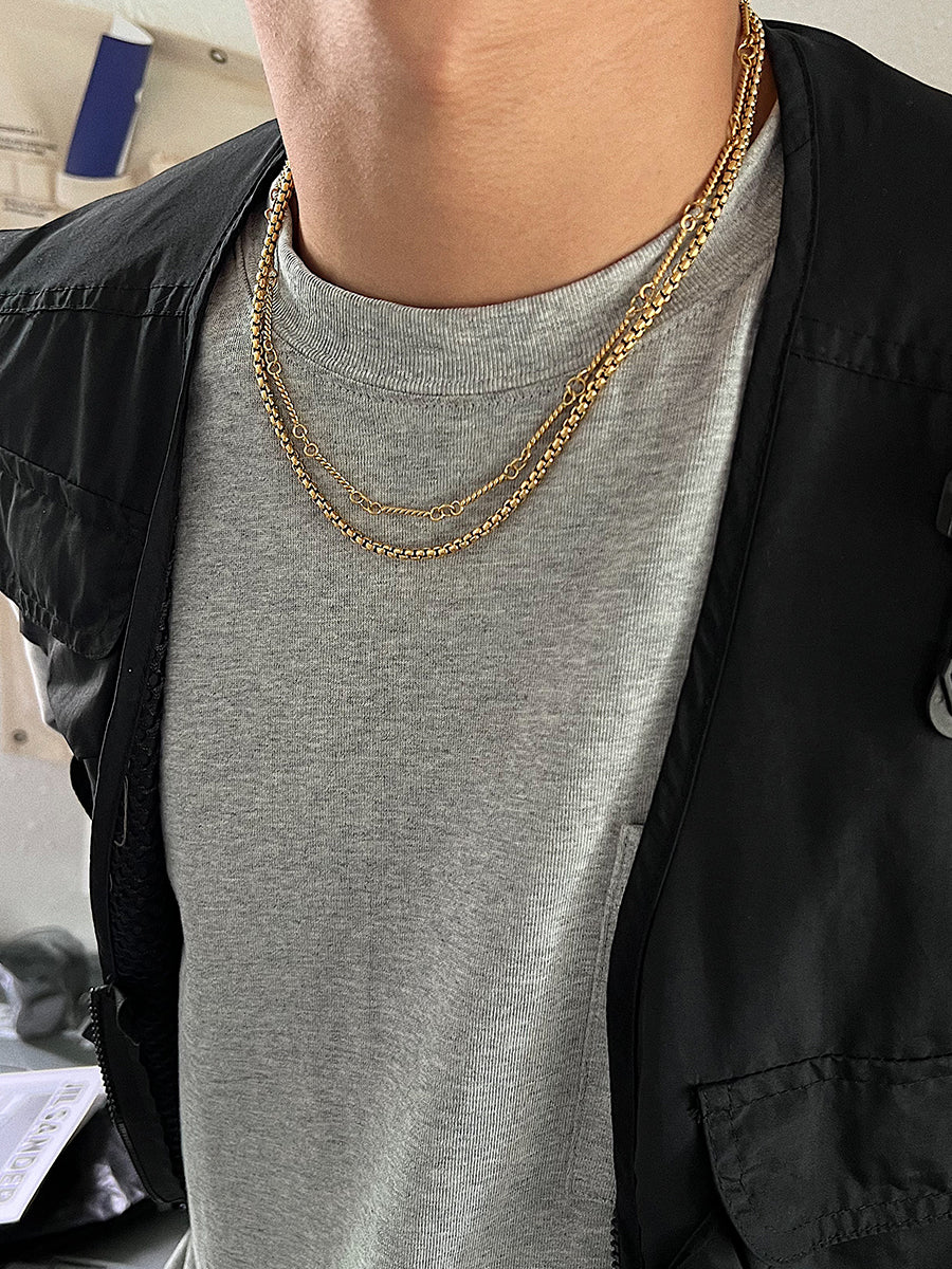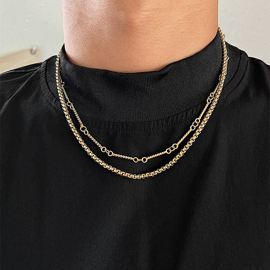 Collar Doble Capa Titanio Acero Versatile - Oro está agotado y se enviará tan pronto como vuelva a estar disponible.