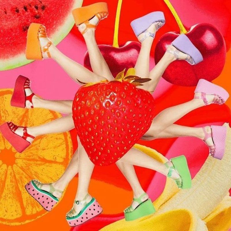 Elementos populares: plataforma de tacones de cuña estilo romano.